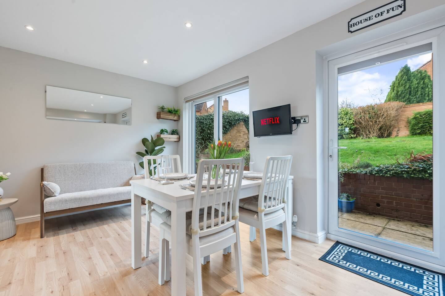 Elegant 3-Bedroom Retreat | Plush Design | Free Parking | Quiet Residential Area Welcome to your stylish home away from home in CV23 . This elegant three-bedroom house blends plush design with everyday comfort, set in a peaceful residential neighbourhood—ideal for families, professionals, or friends seeking a calm and refined stay. Excellent transport links to the M6 and M1 Inside, you’ll find beautifully curated interiors, soft furnishings, and a warm, contemporary feel throughout. The spacious living area is perfect for unwinding, while the fully equipped kitchen makes home cooking effortless. For longer stays, there’s a washing machine and tumble dryer. All bedrooms offer ample clothes storage, perfect for guests who don’t want to pack lightly. Enjoy a powerful shower, plus the added convenience of a downstairs WC. Outside, relax in the enclosed private garden and garden room—ideal for summer months. Secure bike storage is available in the garage. What you’ll love: 🛏️ Two generous bedrooms with plush finishes, plus a third bedroom with a pull-out bed 👗 Ample wardrobe and storage space 🚿 Powerful shower & convenient downstairs WC 🛋️ Stylish living spaces with elegant décor 🍽️ Fully equipped modern kitchen 🚿 Washing machine & tumble dryer 🌿 Enclosed garden & garden room 🚲 Secure bike storage in the garage EV charger on the drive 🚗 Free on-site parking 🧼 Fresh linens, towels, and essentials provided Whether visiting for work or leisure, this refined retreat offers comfort, privacy, and convenience in equal measure. Relax, unwind, and enjoy an elegant, stress-free stay. Hi