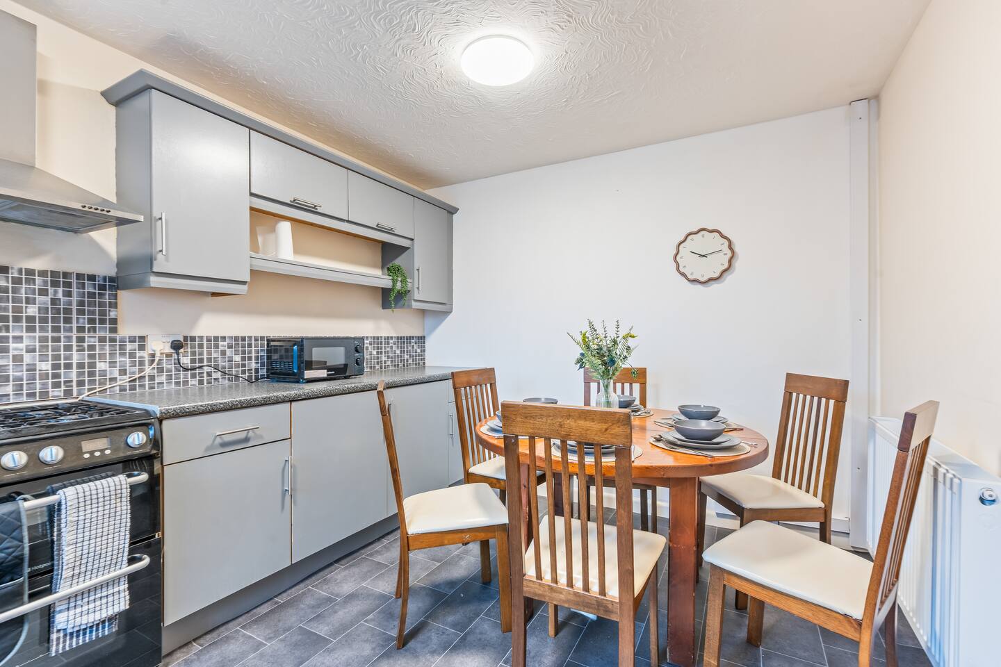 🏡 Welcome to your home near Moseley High Street This spacious and comfortable 3-bedroom house is just moments from Moseley High Street, close to popular cafés, bars, and restaurants. It comfortably sleeps up to 7 guests, ideal for families, groups, or business travellers. 🛏 Sleeping Arrangements • One double bedroom • Three single beds • King-size sofa bed in the living area 🛋 Living & Dining Relax in the bright lounge with a large TV, or enjoy meals and work at the dining table. 🍳 Fully Equipped Kitchen Everything you need for self-catering, including cookware and essential appliances. 🛁 Bathroom Enjoy the convenience of both a bath and a separate shower. 📍 Location Walk to Moseley’s cafés, bars, and restaurants, with easy links to Birmingham city centre. 🚗 Extras Free on-site parking and fast Wi-Fi included.