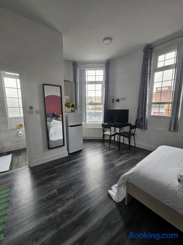 ** follow the instructions of the green picture for discounts** Modern & Stylish Studio in Digbeth | Sleeps 2 | Near Coach Station Welcome to your perfect Birmingham base! This private, stylish studio apartment is located in the heart of Digbeth, Birmingham’s creative and cultural hub—just a short walk from the coach station and close to bars, cafes, and the city centre. Designed for comfort and convenience, the studio features: A comfy double bed with fresh linens Fully equipped kitchen – cook your own meals with ease Private shower room with towels and toiletries Wall-mounted TV with Netflix – binge your favourites anytime Fast Wi-Fi – perfect for remote work or streaming Clothes storage to keep your space organized Dining table for meals, work, or planning your day Whether you're in town for work, exploring Birmingham’s rich culture, or just passing through, this studio offers a comfortable, stylish, and well-located stay. Book now and make the most of your time in Digbeth!
