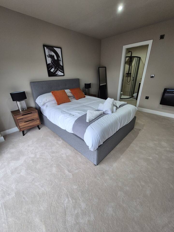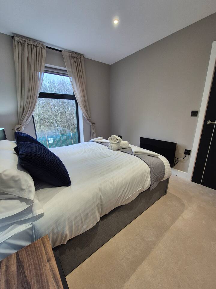 This spacious interior has been finished to a high standard and features comfortable furnishings, modern fixtures and fittings and plenty of room for up to 4 guests to enjoy a comfortable stay. There are 2 generous double bedrooms, both with comfortable beds made up with crisp hotel linen as well as plenty of storage space for clothes. The large open plan living area comprises a modern fully equipped kitchen with everything you need to cook your own meals at home, a sofa, armchair and smart TV. There is high speed broadband throughout the property. The 2 modern bathrooms both feature powerful showers (1 also with a bath), as well as complimentary toiletries and fluffy towels for your use.