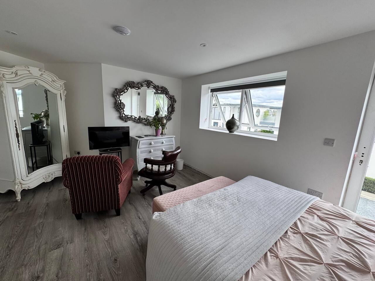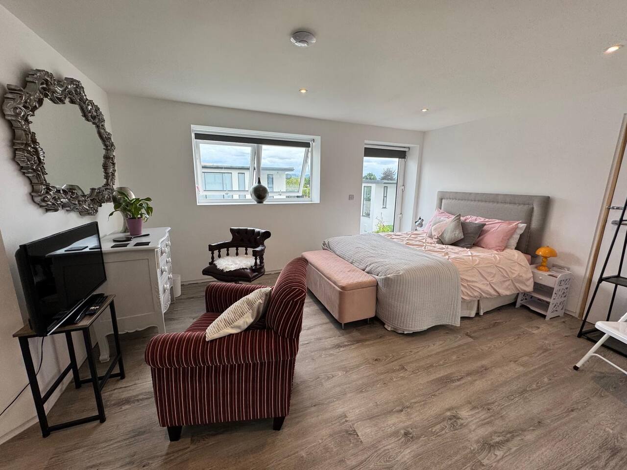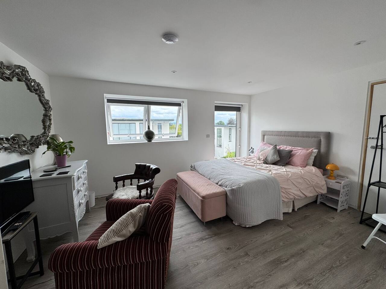 Luxurious Hillview Room in Grand Malvern Guesthouse - dogs welcome! Inside your room, you’ll find plush bedding, stylish decor, and thoughtful touches to ensure a peaceful and restful stay. The large en-suite guarantees relaxation with a spa- like ambiance! Just outside your door, you’ll enjoy shared access to a generously sized living area, complete with a large-screen TV — perfect for relaxing after a day of exploring. The fully equipped kitchen offers ample space for cooking and dining, ideal for those who love to prepare meals with a view. Just outside the front door is a large open space with seating to enjoy a coffee in the Malvern sunshine! Whether you’re here for walking trails, wellness, or simply a tranquil retreat, this welcoming guesthouse offers comfort, space, and scenery in equal measure. Sip your morning coffee while gazing out at rolling hills, or unwind with a glass of wine as the sun sets over the countryside. Highlights: • Lorry parking and space for large vans/contractor vehicles • Luxurious private bedroom and attached en-suite in large shared guesthouse • Shared access to spacious kitchen and living room with large TV • Breathtaking views of the Malvern Hills • Ideal for walkers, couples, solo travelers, or remote workers seeking inspiration Book your relaxing countryside getaway today!