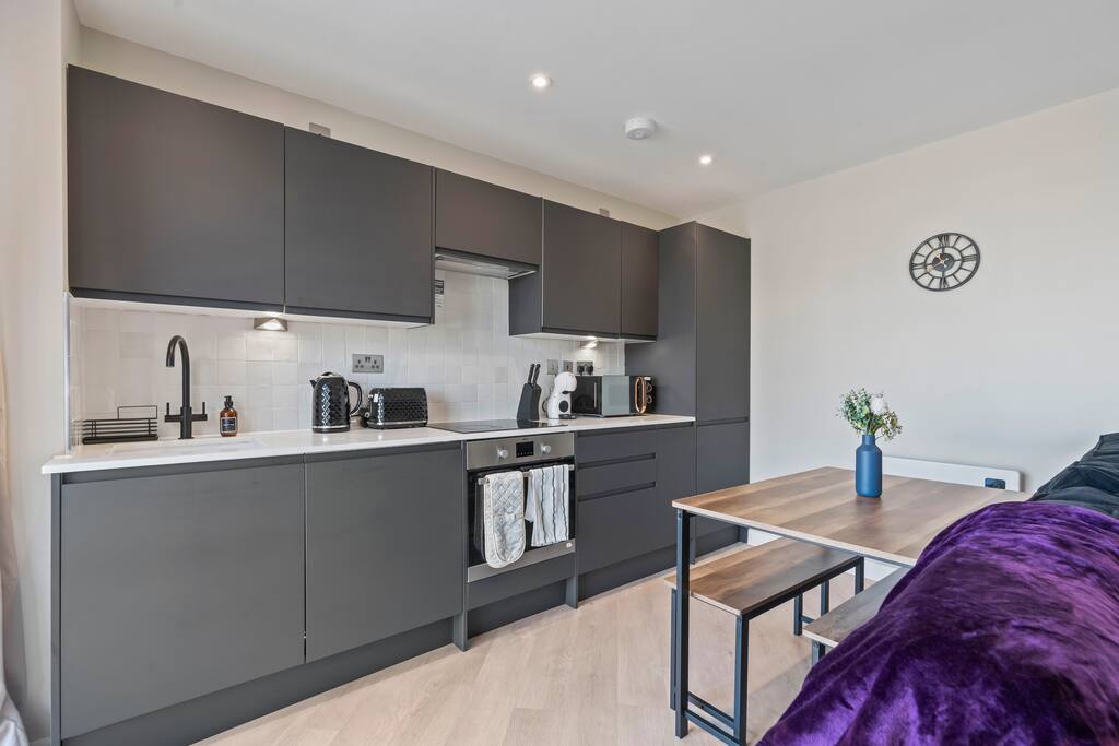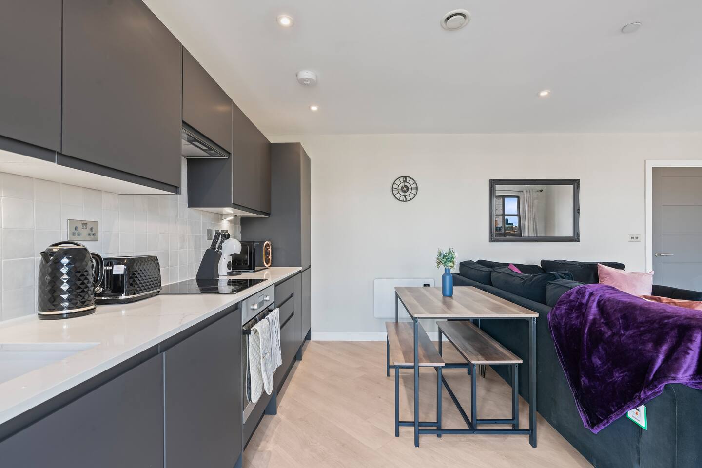 Experience modern luxury in this brand-new 2-bed industrial-style apartment in the heart of Digbeth. Featuring high ceilings, Large windows with city views, brick, sleek finishes, and designer décor, this stylish space is perfect for city explorers or business travellers. Enjoy a fully equipped kitchen, comfy beds, fast Wi-Fi, and easy access to Birmingham’s vibrant nightlife, street art, and creative scene—just a short walk from the Bullring. Your chic urban retreat awaits!