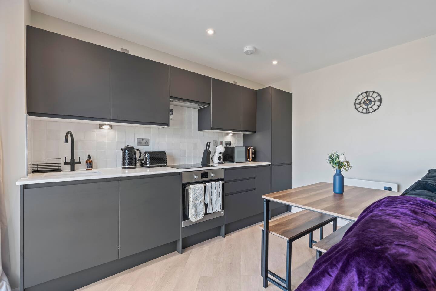 Escape to the heart of Birmingham with a stylish city break in Digbeth! This spacious 2-bed apartment blends luxury and industrial design with high ceilings, exposed features, and skyline views. Unwind in two comfy double beds, a large bath, or under the powerful rainfall shower. Cook with ease in the fully equipped modern kitchen, stay connected with fast Wi-Fi, and enjoy everything the city offers just steps away. Perfect for couples, friends, or remote working getaways!