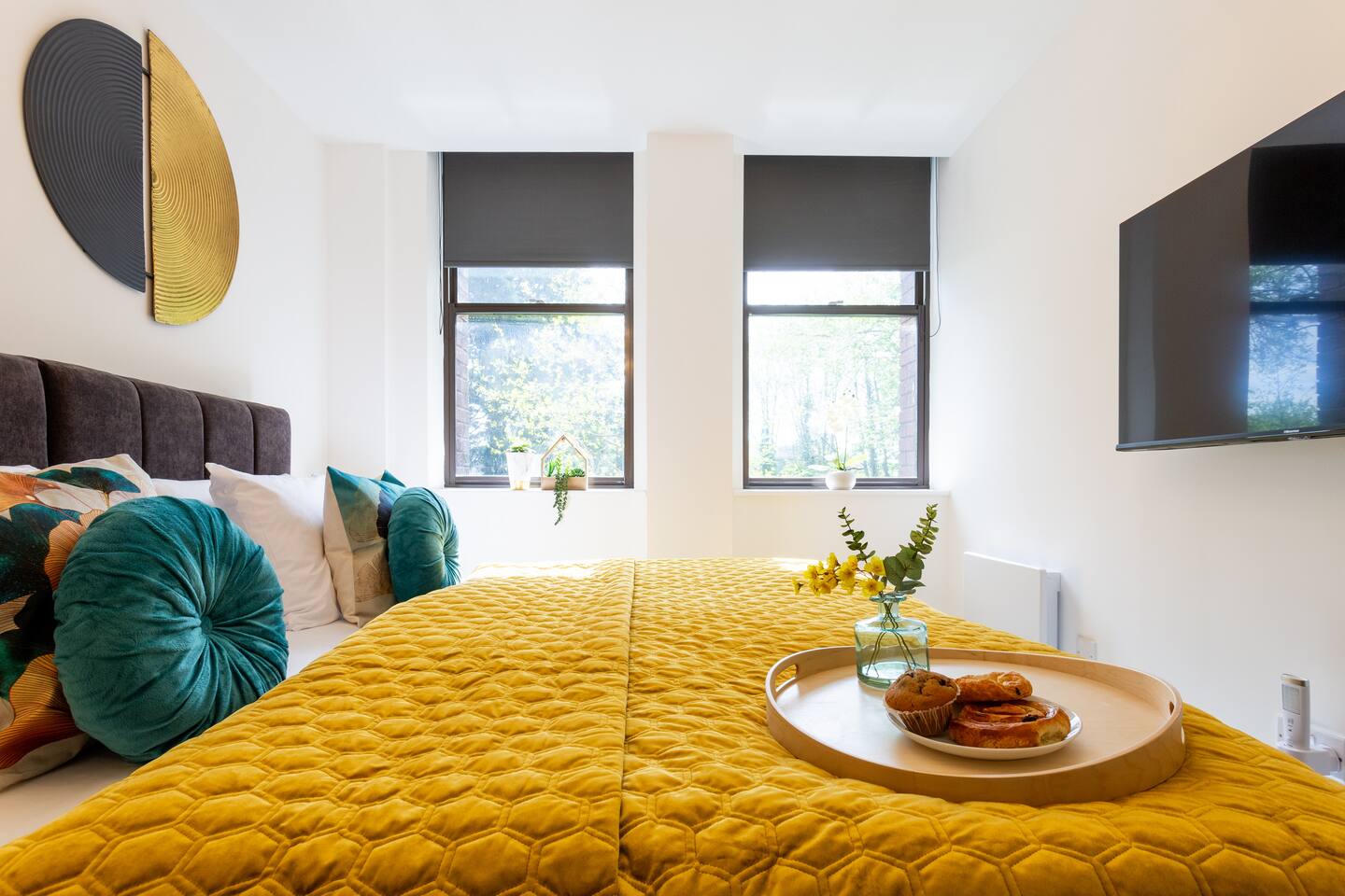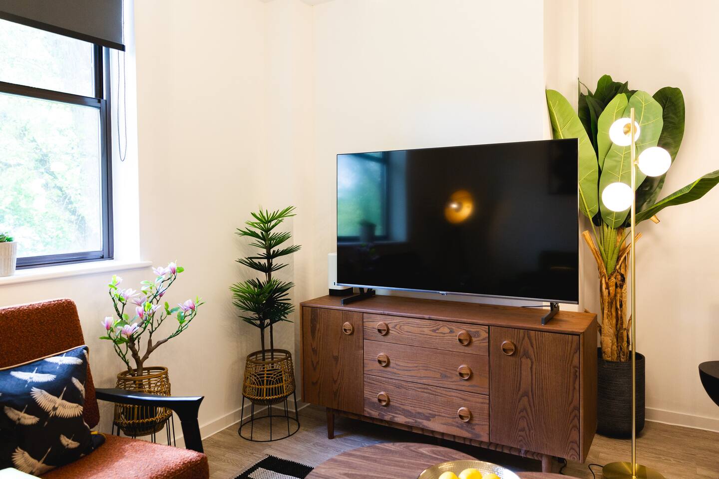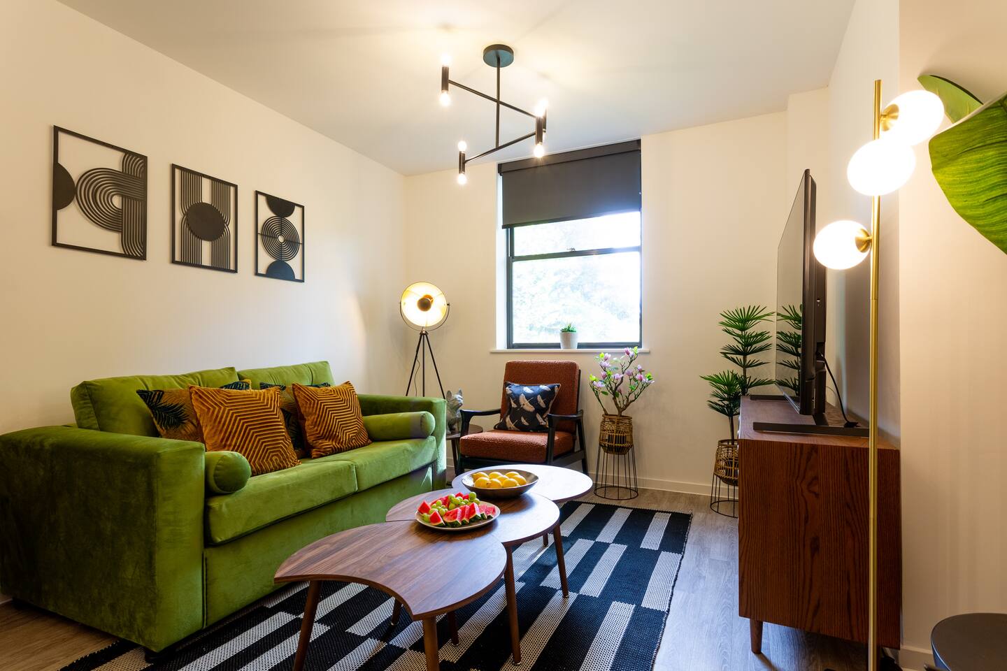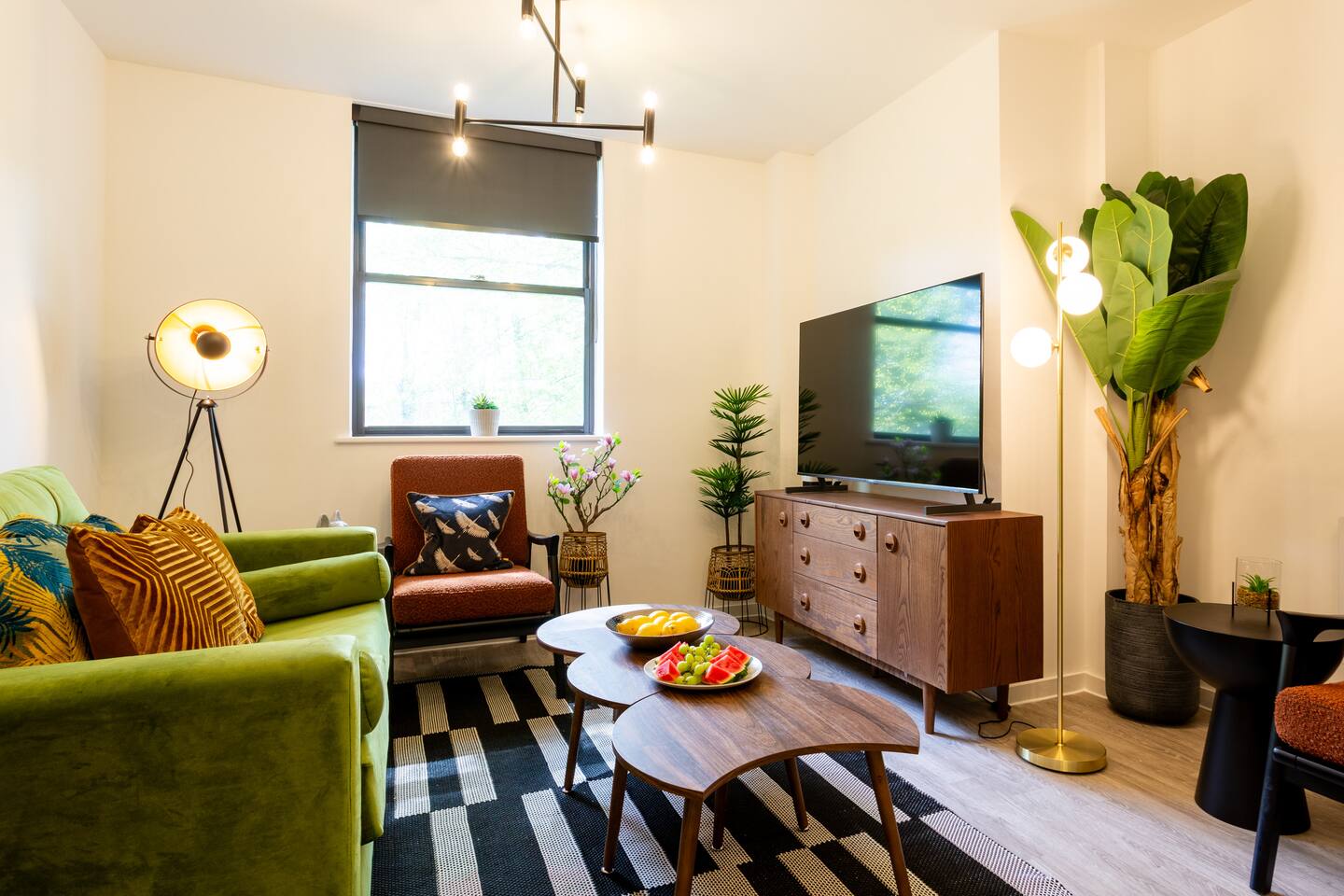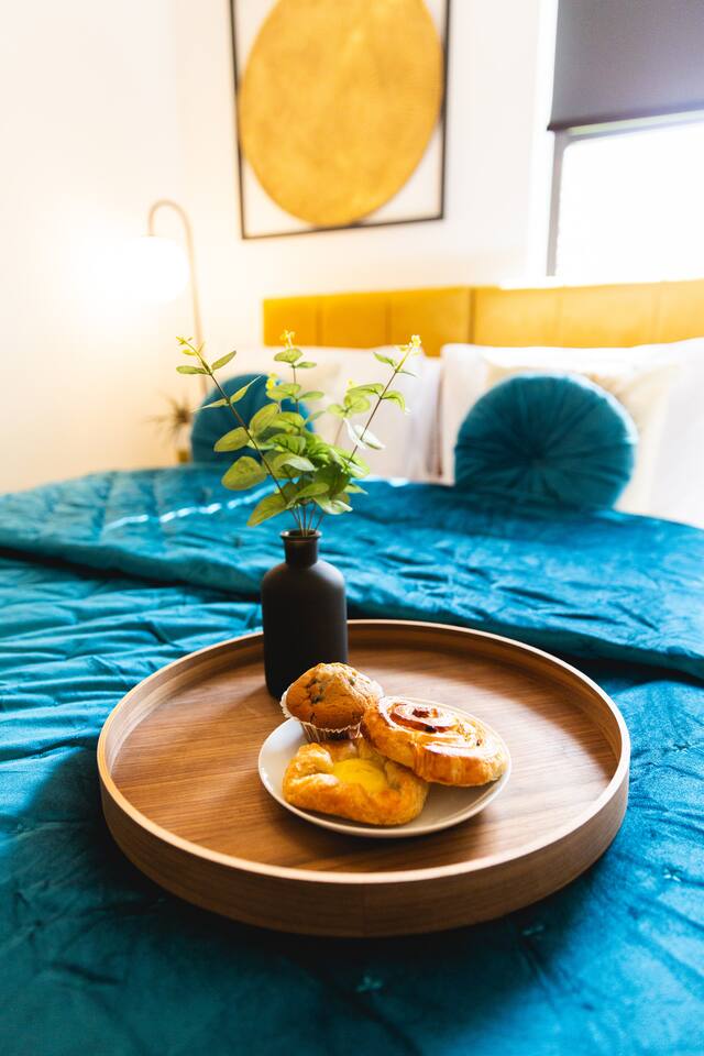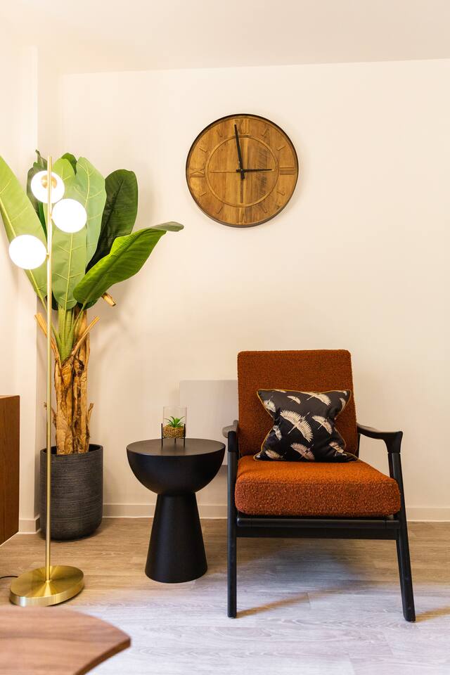 Stylish & Comfortable Stay in central Taunton Guests will enjoy complete relaxation and convenience with high quality towels and hotel standard linen provided. As well as complimentary luxury shampoo, shower gels, and hairdryer - you’ll simply have to relax and unwind! Enjoy a bright, modern retreat in a well‑kept brick building with landscaped touches. Inside, the open‑plan living area pairs a plush green sofa and vibrant armchairs with statement lighting, greenery, high‑speed Wi‑Fi, and a smart TV with Netflix ( guests will need to use their own logins ) and other streaming services. A sleek dining table seats four for shared meals, while the fully equipped kitchen boasts modern appliances and thoughtful touches. Two beautifully styled bedrooms offer cosy bedding, soft lighting, and plenty of storage. The master bedroom boasts a 43 inch smart TV for complete entertainment! The spa‑like bathroom features a bathtub with shower, elegant shelving, and fresh essentials. Natural light, curated décor, and homely details make this the perfect base for exploring, working, or simply relaxing.