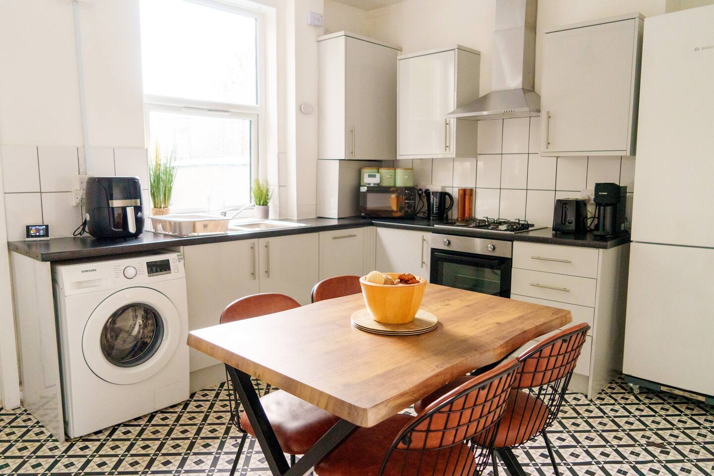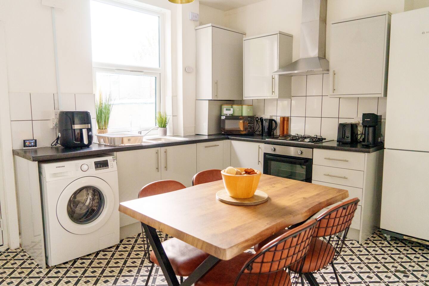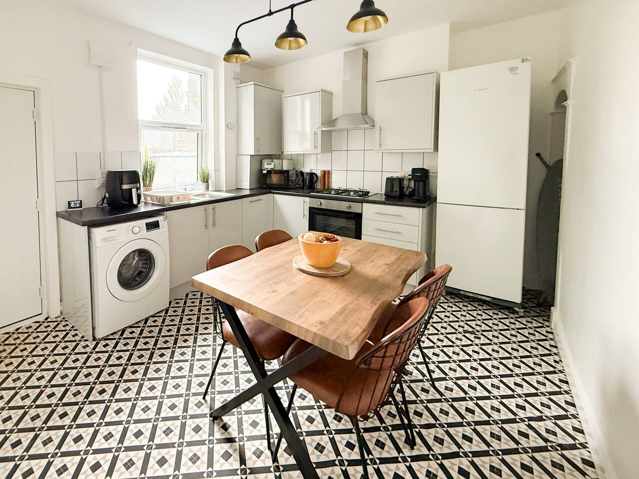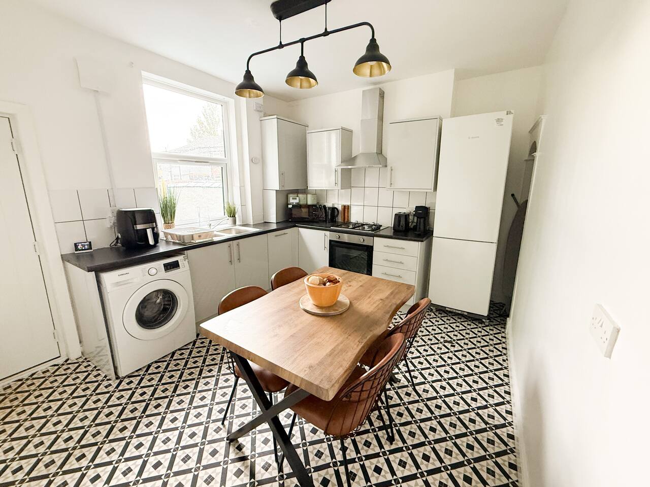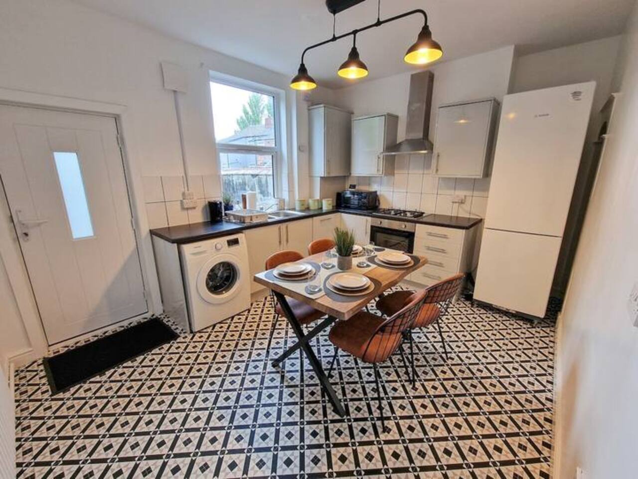 This stylish and modern two-bedroom terrace house offers the perfect balance of comfort and practicality, whether you’re visiting for work or leisure. Located close to the Therme Manchester construction site and just a short walk from Patricroft Station, the property provides excellent access to Trafford Park, Salford Quays, MediaCity, and the Royal Salford Hospital. With direct routes via the M602 and M60 motorways, getting around Greater Manchester is quick and convenient. Inside, you’ll find: Bright living room with cozy seating, a smart TV, and fast Wi-Fi – ideal for streaming, working remotely, or relaxing after a busy day. Fully equipped kitchen and dining space, perfect for home-cooked meals and spending time together. Two comfortable bedrooms: one with a double bed, the other with two single beds – ideal for families, friends, or colleagues. Modern bathroom with complimentary shampoo, body wash, and fresh towels provided. Outside, the house features a private courtyard garden with seating, a great spot for morning coffee or evening downtime. Additional perks include free on-street parking, high standards of cleanliness, and all the essentials you need for a hassle-free stay. Whether you’re working nearby, attending events, or exploring Manchester, this home offers a stylish and well-located base.
