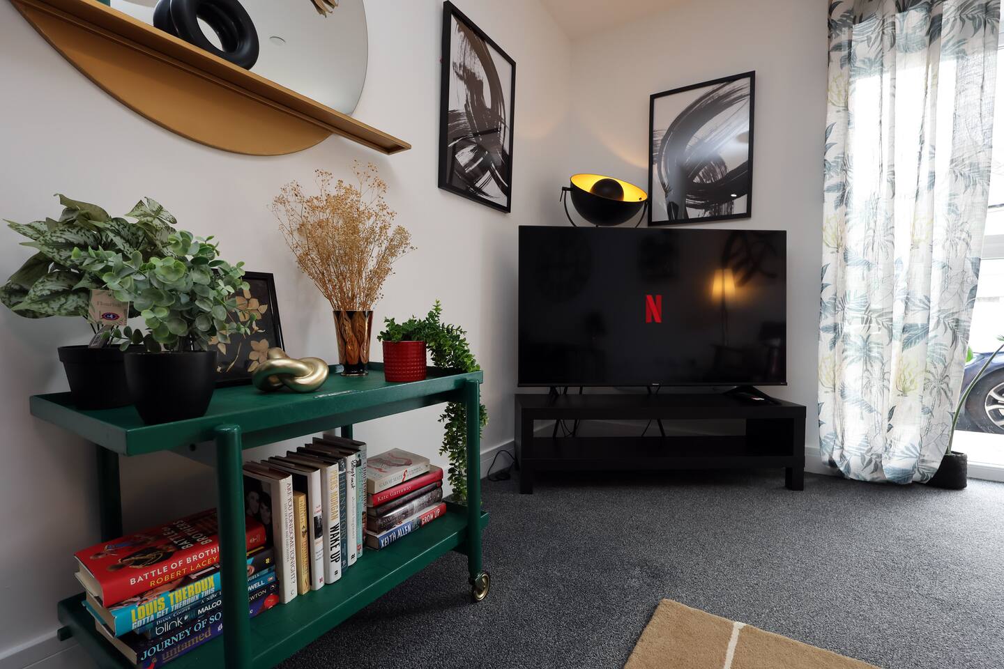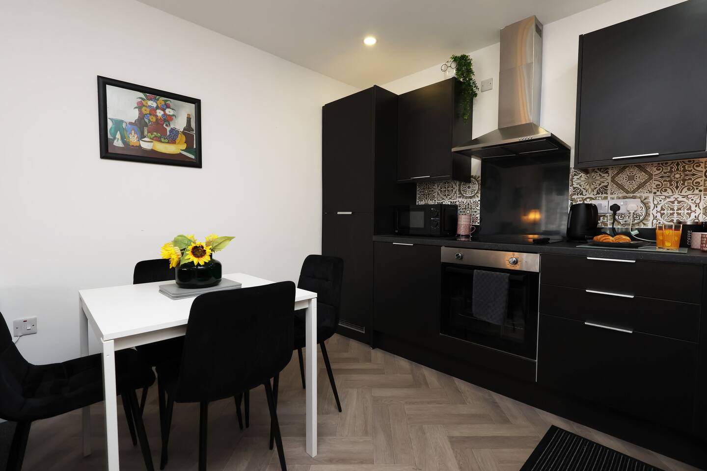 💰*discounts available by following the instructions on the green picture* Guests will find check-in convenient with self check in - no in person meet up required! The stylish apartment is designed with practicality in mind and modern features. 🛋️There is a main living area: The kitchen and the living space offers a comfortable and relaxing environment equipped with table and chairs for dining should you chose a quiet night in after exploring the city. 📍The property is located on Richmond road , Cardiff. It is around a 20 minute walk to the city centre and around 30 minute walk to Cardiff Central train station. The local area on city road which is around the corner, is bustling with all amenities including restaurants, bars, pubs and supermarkets so you wont have to go far if you need to stock up. 👨🍳The apartment also includes, items such as a microwave, kettle, stove, chopping boards, a pizza cutter, full cutlery set, a hover, wine glasses, disposable toothbrushes, shampoo, conditioner and shower gel. 📺Amazon Firestick with access to Netflix, Disney + and prime Video meaning your evenings are catered for. 🛏️High quality towels, toiletries and linen provided to give you a home away from home feel. 🐕Dogs are welcome with prior notice. 🛜WIFI is provided (up to 500mbps), and an ethernet cable is available for an even stronger connection if required. ♨️Heating is an electric system and a thermostat and can be easily operated.