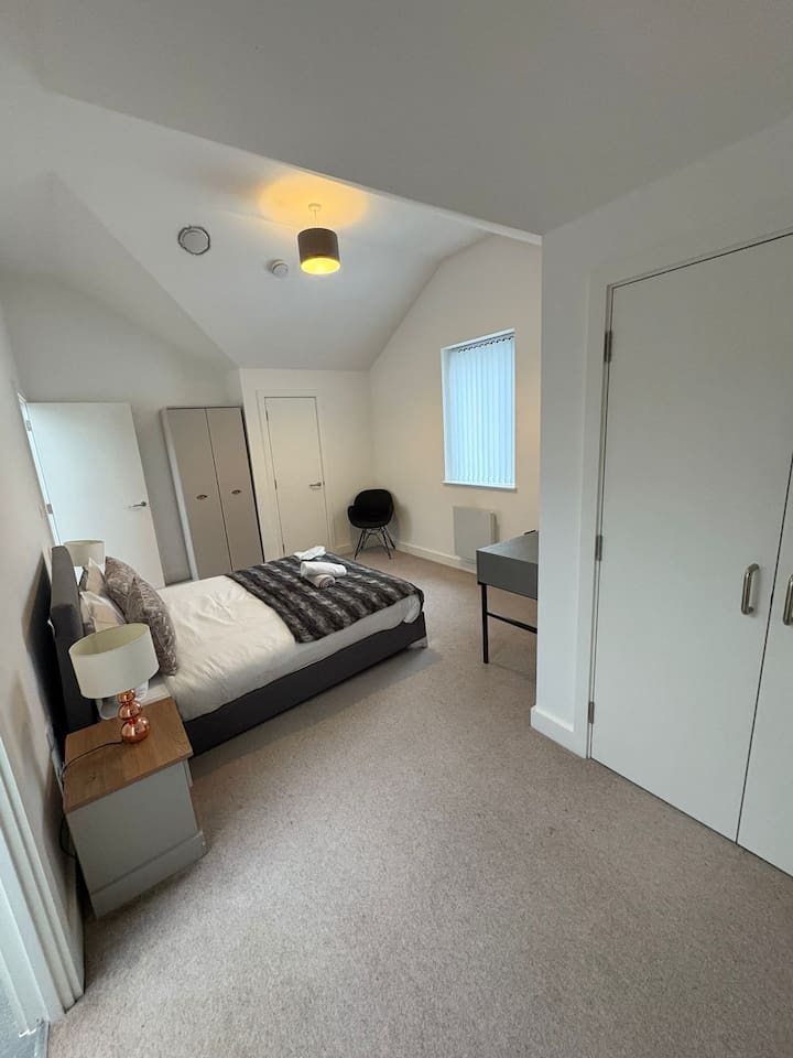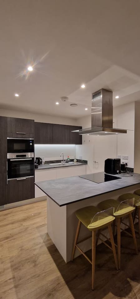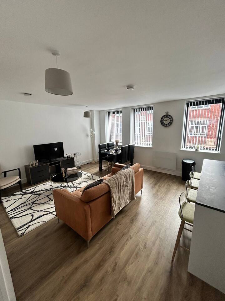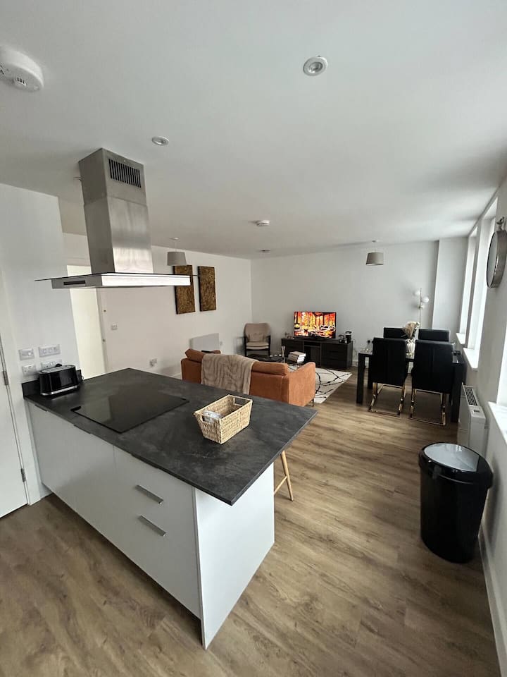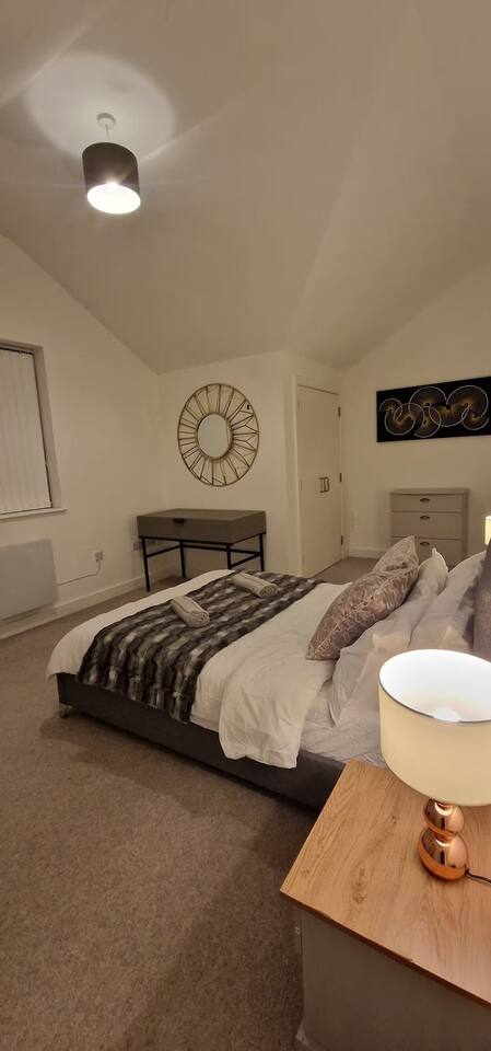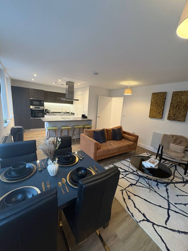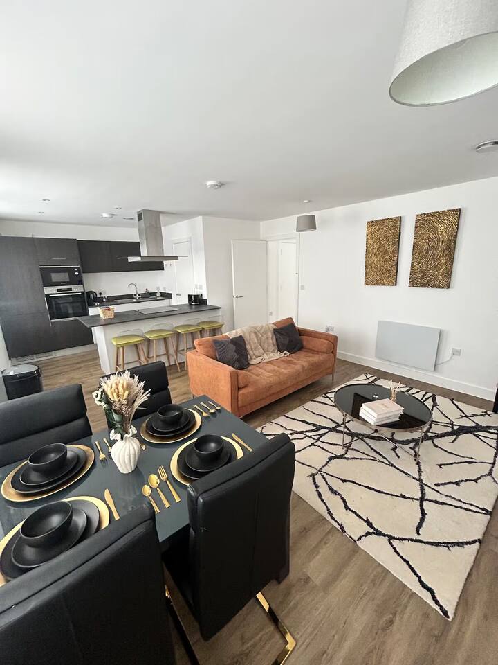 🏙️ Luxury 2-Floor Penthouse in Birmingham’s Iconic Jewellery Quarter Welcome to your exclusive urban retreat in the heart of Birmingham’s stylish Jewellery Quarter. This luxurious two-floor penthouse apartment combines modern elegance, comfort, and convenience — the perfect choice for business travellers, couples, and families seeking a premium city stay. ✨ The Space Step inside and experience a world of refined style and sophistication. Spanning two spacious floors, this stunning penthouse offers: Master Bedroom with En-Suite – A beautifully designed sanctuary featuring a plush king-size bed, premium linen, soft lighting, and a private bathroom with high-end fixtures and a walk-in shower. Two Additional Modern Bathrooms – Sleek and contemporary, each thoughtfully equipped with quality fittings, fresh towels, and essential toiletries for your comfort. Open-Plan Living Area – Relax and unwind in the bright, airy lounge with designer furnishings, statement décor, and floor-to-ceiling windows that fill the space with natural light. Entertainment Ready – Enjoy movie nights on the Smart TV with Netflix, or stay connected with superfast WiFi throughout the apartment. Fully Equipped Kitchen – Prepare delicious meals with modern appliances, a coffee machine, and all the cookware and utensils you’ll need. Dining Area – Share meals or work comfortably at the elegant dining table overlooking the vibrant cityscape. 🌆 Location Situated in Birmingham’s historic Jewellery Quarter, this penthouse offers the perfect blend of tranquillity and city energy. Step outside and you’ll find: Trendy cafés, bars, and award-winning restaurants just around the corner Easy access to independent boutiques and art galleries Excellent transport links — only minutes to Birmingham City Centre, Grand Central Station, and the Bullring Shopping Centre Whether you’re here for work, leisure, or a weekend escape, everything Birmingham has to offer is right on your doorstep. 🛏️ Guest Comforts We’ve taken care of every detail to ensure a seamless, stress-free stay: Fresh linen and towels provided Complimentary toiletries and essentials Washer available for longer stays Secure building entry for peace of mind 💎 Why You’ll Love It From the moment you arrive, you’ll feel the unique charm of the Jewellery Quarter paired with the indulgence of high-end city living. Whether you’re sipping coffee in the sunlit living room, streaming a film after a day exploring, or enjoying a glass of wine before heading out for dinner, this penthouse offers the ultimate Birmingham experience. Book your stay today and discover comfort, convenience, and elegance in this truly exceptional urban home.
