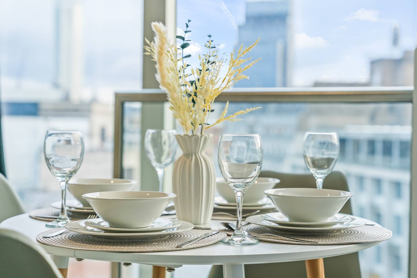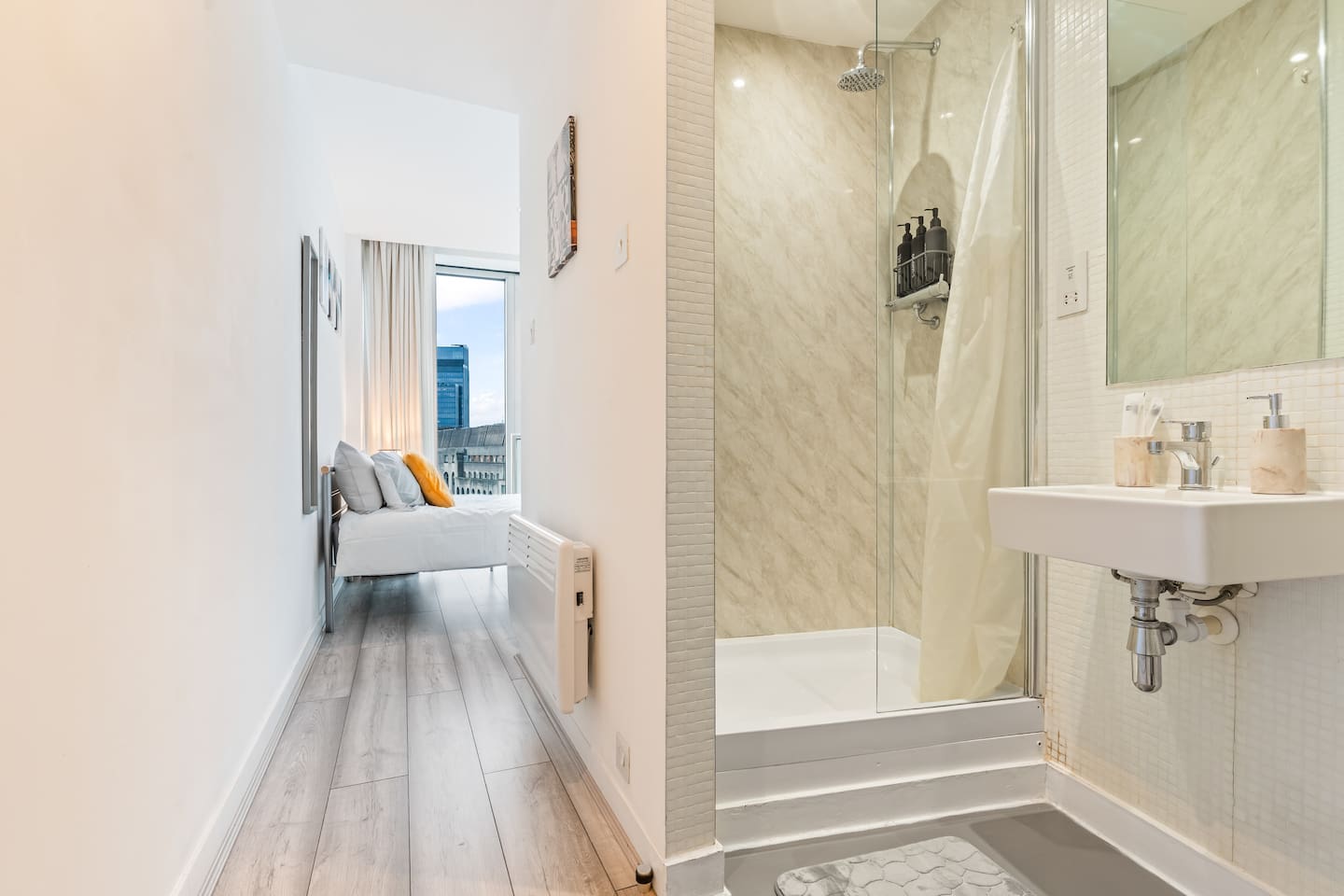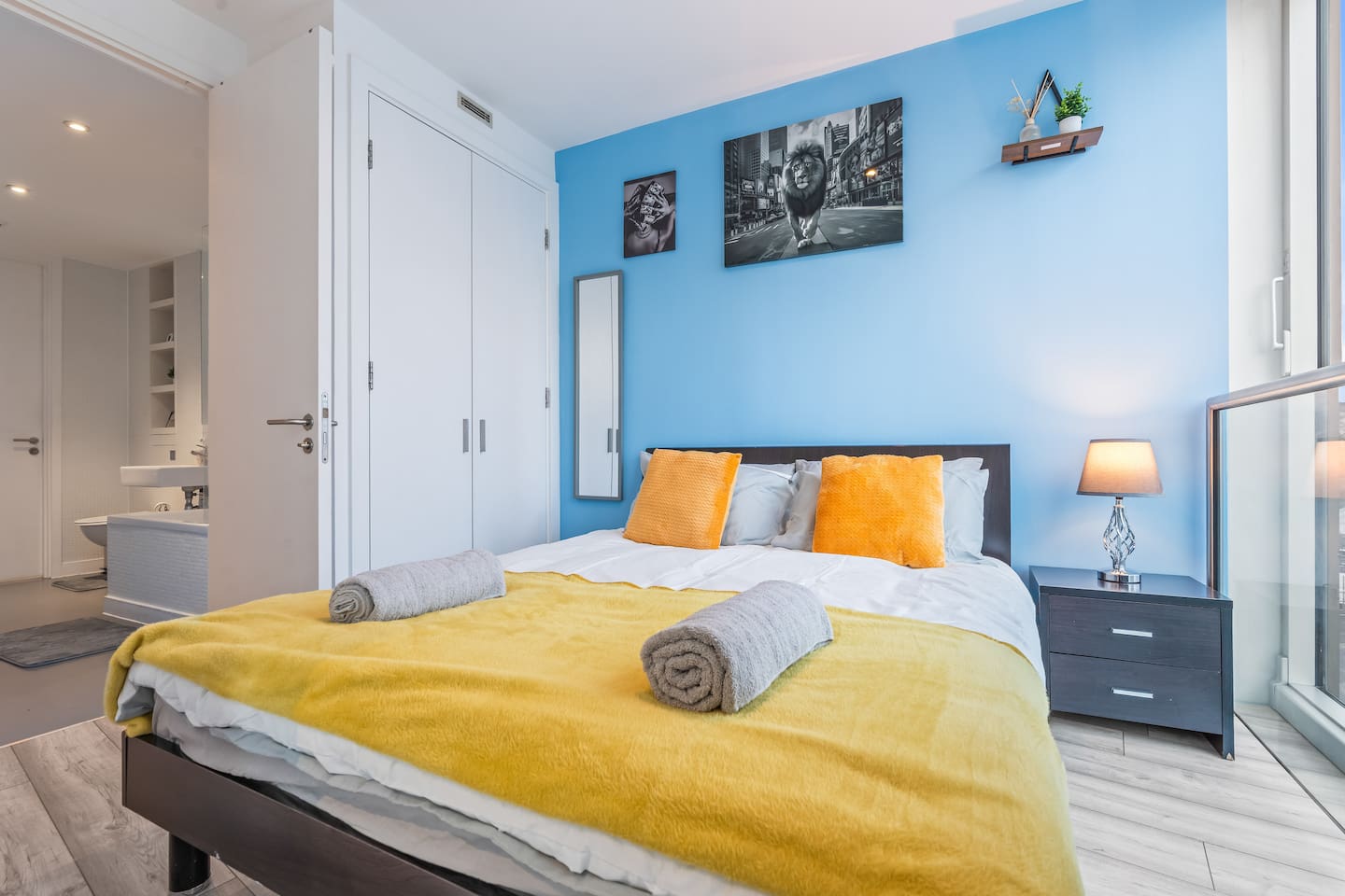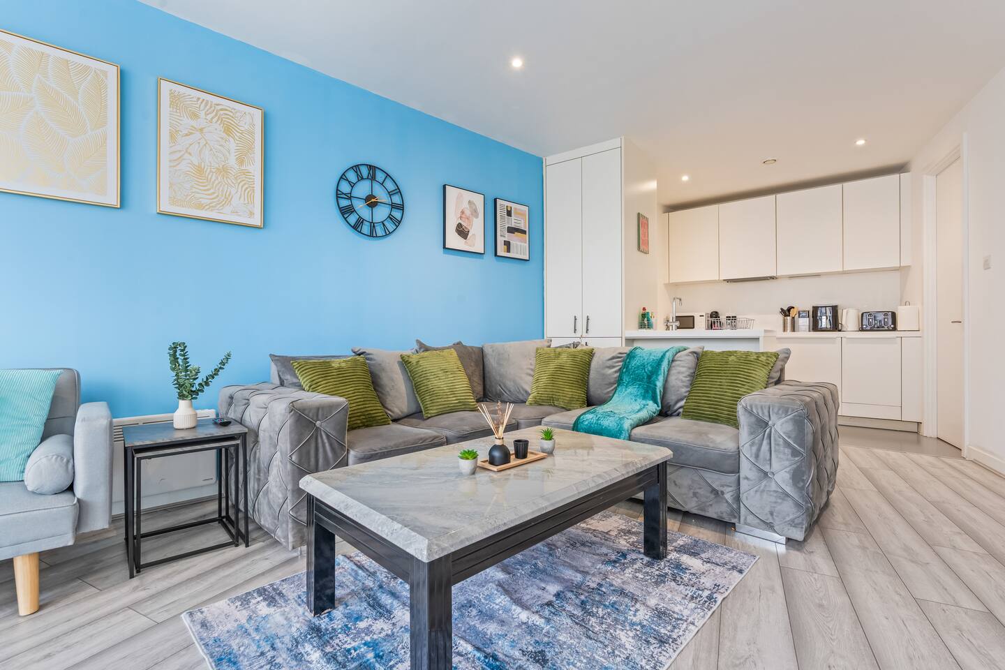 💰Looking for discounts? Please follow the instructions on the green picture for more information 📍 New Street ( Grand Central ) 5 minutes walk Moor Street Station 4 minute walk 🏠Airbnb are proud to present this simply stunning,2 bedroom 2 bathroom apartment, sleeps 6 in The famous Rotunda. Ideal for travelling professionals and families who desire a home away from home feel with a touch of uniqueness to their getaway! 🔐KeyNest self check in for your convenience. 🛏️The large bedrooms with floor to ceiling windows overlooking the vast Birmingham skyline, boasts a luxury king sized bed made up with crisp linen and clothes storage. Attached to the en-suite with a beautiful power shower over the deep bath calls for relaxation with a spa like experience. 📺The open plan living room caters for all TV entertainment fans where guests can enjoy Netflix, Prime TV plus many more streaming services. The large sofa bed folds for an extra two guests. 👨🍳The kitchen, with fridge freezer, electric hob and oven is complete with everything you’ll need to cook your favourite meals to enjoy around the kitchen island or dining table overlooking the city.