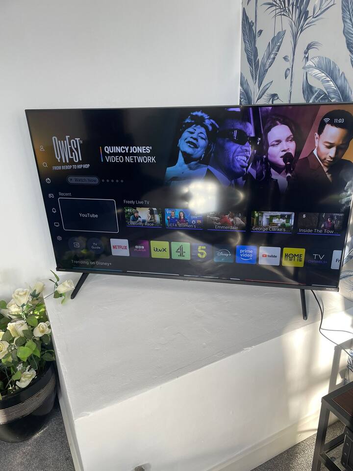 Welcome to this colourful and beautifully designed two-bedroom flat in the vibrant heart of B18 Jewellery Quarter. This large, open-plan space is filled with natural light and decorated with bold, modern touches that create a warm and cheerful atmosphere. Enjoy a spacious living area featuring comfortable seating, vibrant décor, and a Smart TV—perfect for streaming your favourite shows. With fast, reliable Wi-Fi, the flat is ideal for remote work, video calls, or relaxing entertainment.