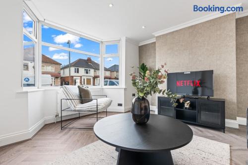 π‘ Spacious 4-Bedroom Modern Home This bright and modern four-bedroom house is ideal for families, groups, or longer stays, offering plenty of space and comfort throughout. ποΈ Bedrooms & Bathrooms Four well-proportioned bedrooms and two contemporary bathrooms, providing privacy and convenience for all guests. π³ Large Kitchen & Dining A fully equipped, spacious kitchen with generous worktop space, perfect for cooking and entertaining, plus a dining area to enjoy meals together. ποΈ Living & Entertainment A comfortable living area with a Smart TV and free high-speed Wi-Fi, ideal for relaxing or working remotely. π§Ί Essentials Included Fresh linen and towels provided for a hassle-free stay. πΏ Outdoor Space A large back garden, perfect for relaxing, outdoor dining, or family time. π Parking Free off-street parking available for added convenience. β¨ A welcoming, well-equipped home designed for a comfortable and stress-free stay.