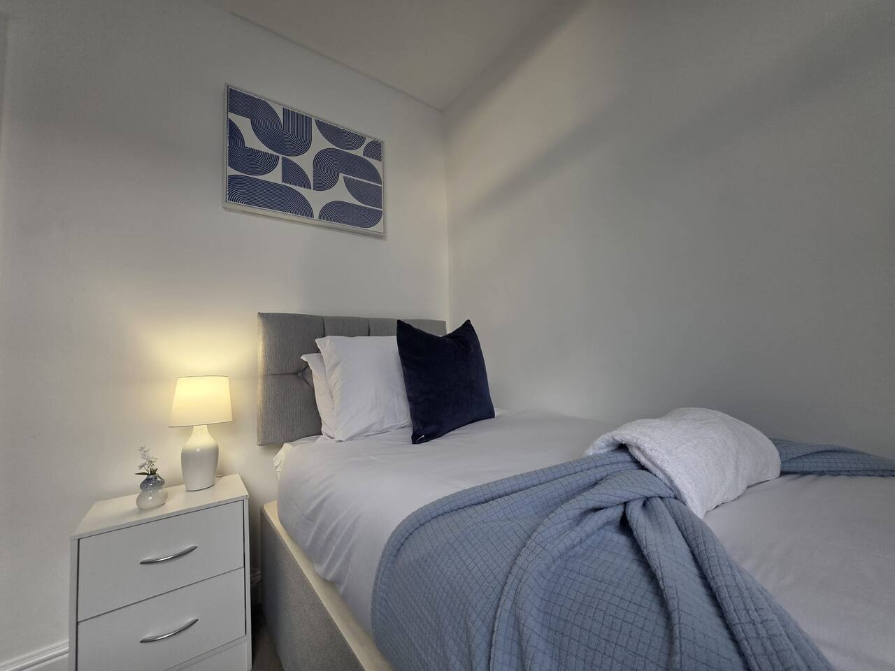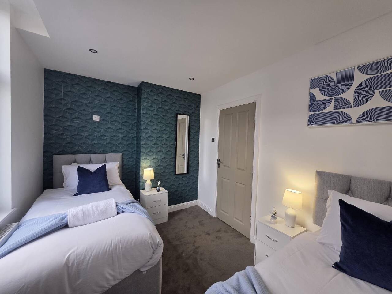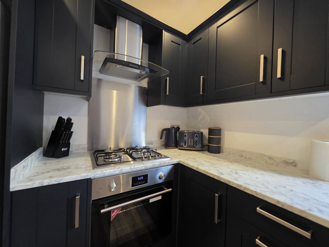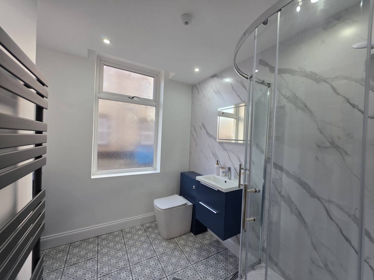Discount available by following the instructions on the green picture. This retreat is perfect for families or groups keen to experience all Liverpool has to offer. Experience ultimate relaxation at this stunning 4 bedroom home a moment from Anfield Stadium in Liverpool. Perfectly nestled beside the iconic ground, the short distance to the vibrant city provides convenient opportunities to explore from this prime location. We invite you to indulge Liverpool's rich cultural heritage, lively shopping districts, and famous attractions. Step inside and be greeted by the elegance and warmth of our stylishly appointed home. The décor, a perfect mix of contemporary design and cosy ambiance, ensures that your stay is as comfortable as it is luxurious. The living area is carefully designed to relax after exploration and the kitchen caters for a perfect evening meal together. The powerful showers - all three of them will provide a pamper like no other. Our home features three fully tiled, luxurious bathrooms designed to offer a spa-like experience. Refresh under the soothing rainfall showers, or unwind in the main bedroom deep soak tub—your personal oasis for tranquillity and relaxation. Dreamy Nights in Plush Bedrooms Each of our four bedrooms is a sanctuary of comfort, featuring plush linens and cosy beds that promise restful nights. The beds can be king size or singles - you decide! The main bedroom, a luxury suite with a king-size bed and a 43" TV with access to all major streaming sites through the smart TV. Fully-Equipped Kitchen & Modern Amenities Our fully-equipped kitchen is ready to meet all your culinary needs. washing machine Smart home features like Philips Hue lighting and a Hive wireless thermostat allow you to create the perfect ambiance. Stay connected with superfast Wi-Fi throughout the home. Sunlit Garden for Leisure and Entertainment Step outside into our private sun trap patio garden, a perfect spot for a coffee in the morning or a wine in the evening.
