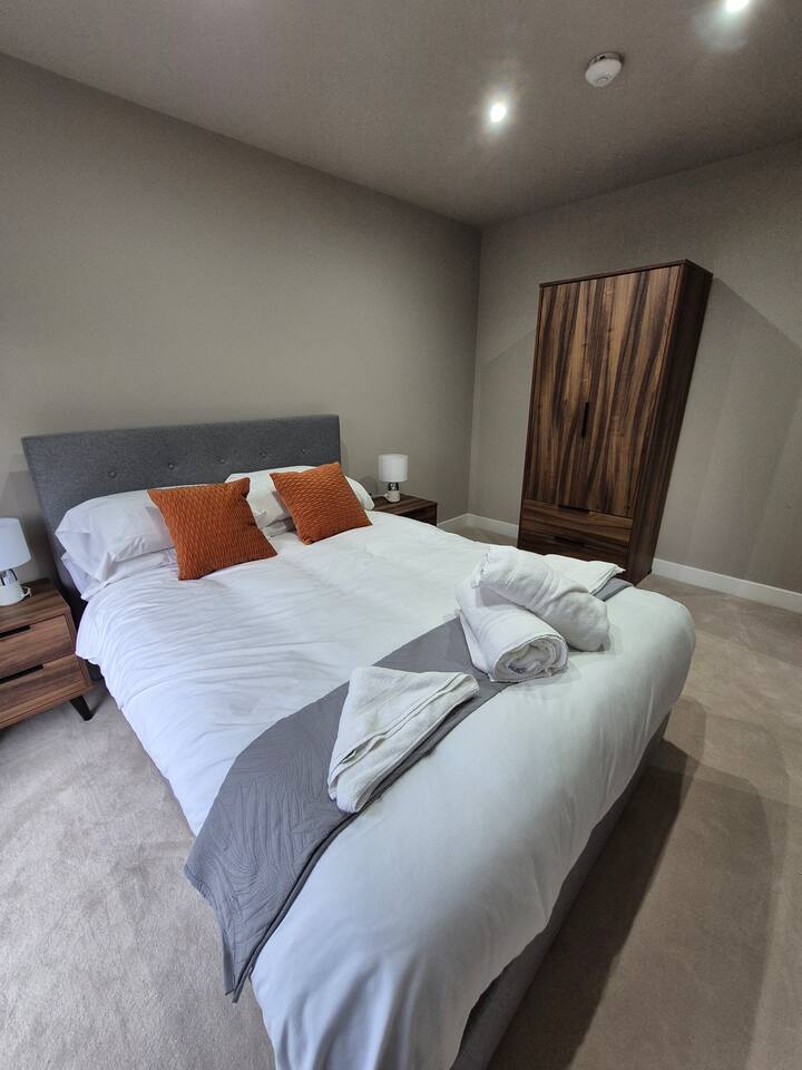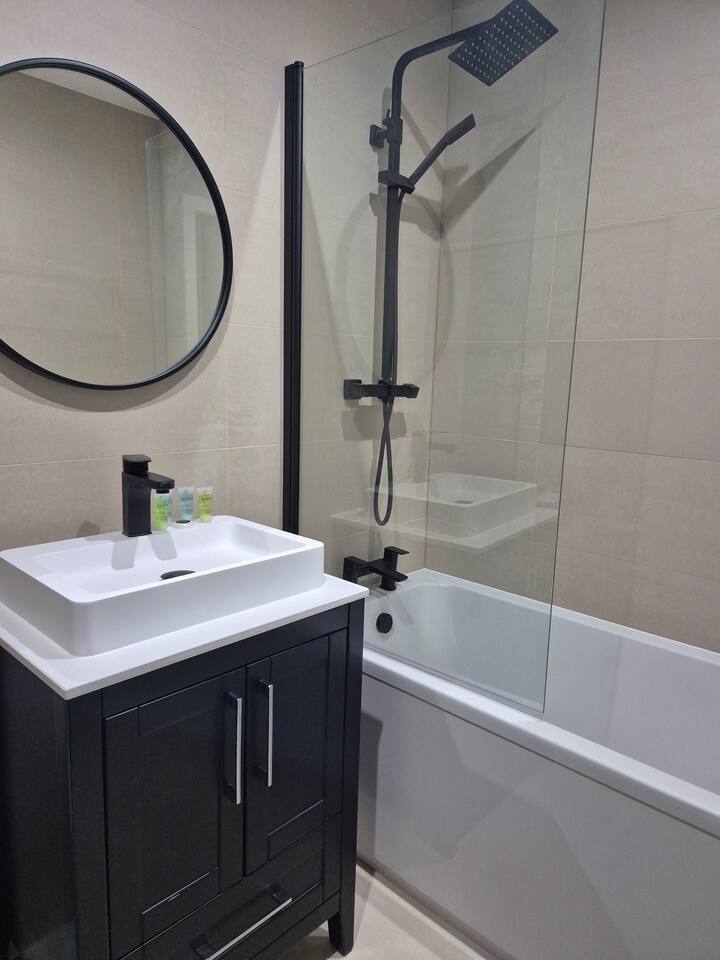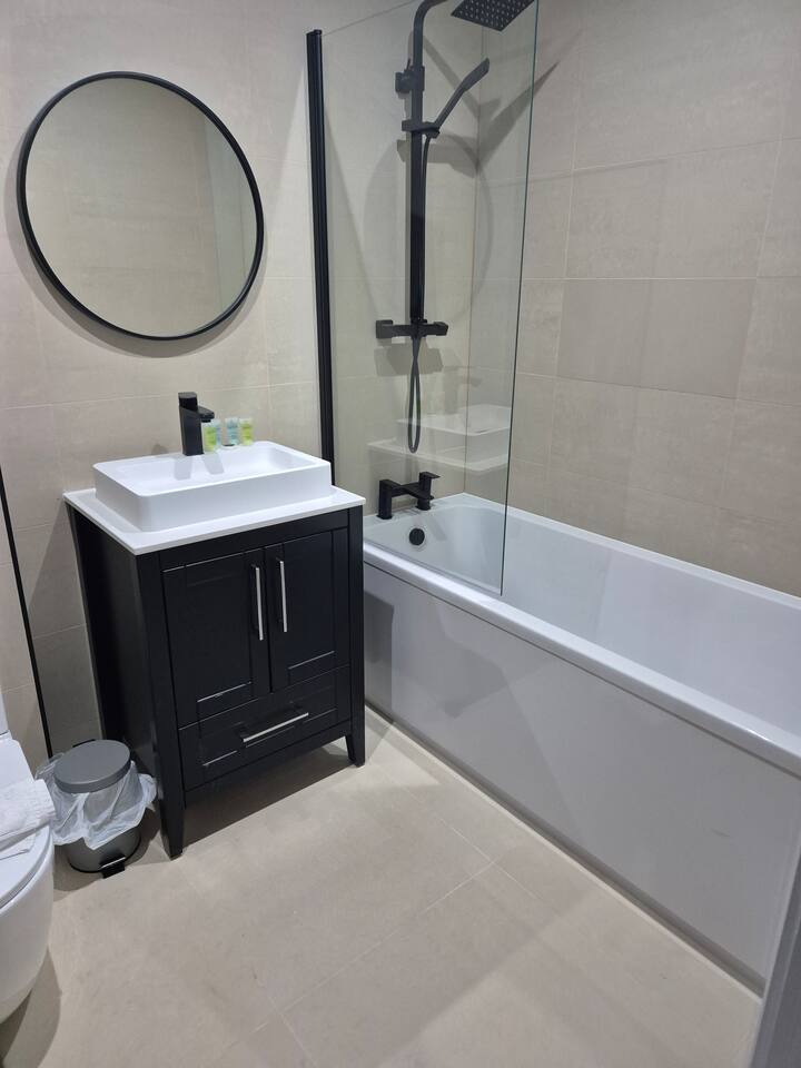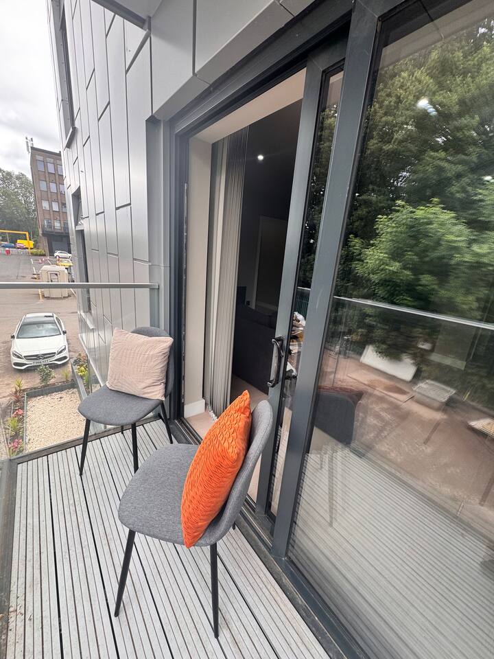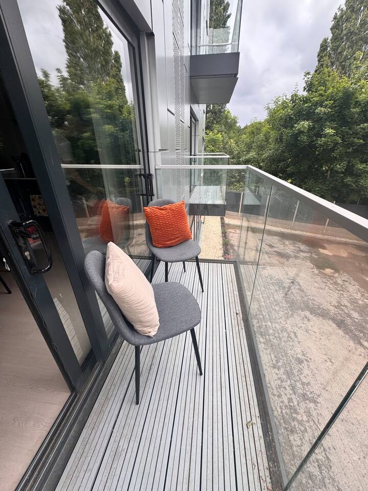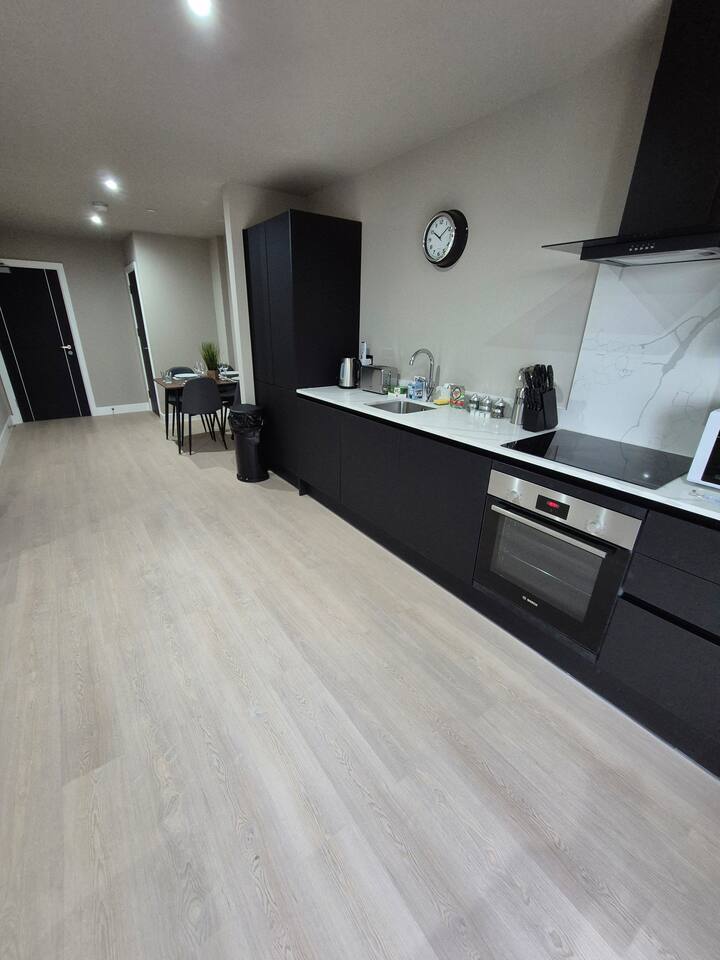 This stunning 2 bedroom 2 bathroom first floor apartment with private balcony is located within easy reach of both Birmingham and Solihull and is part of a secure development. You will find everything required for up to 4 guests to enjoy a comfortable and homely stay, including a fully equipped kitchen/open plan living area, 2 modern bathrooms with complimentary toiletries and towels and high speed Wifi throughout. Two double beds in each room and a powerful shower in each bathroom- just relax!