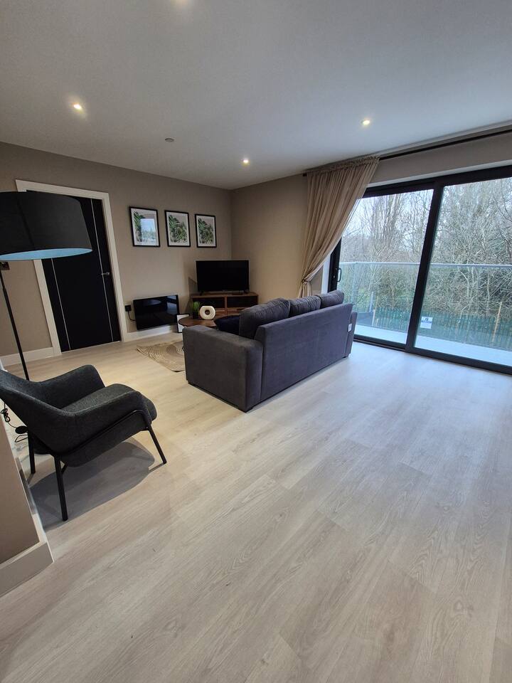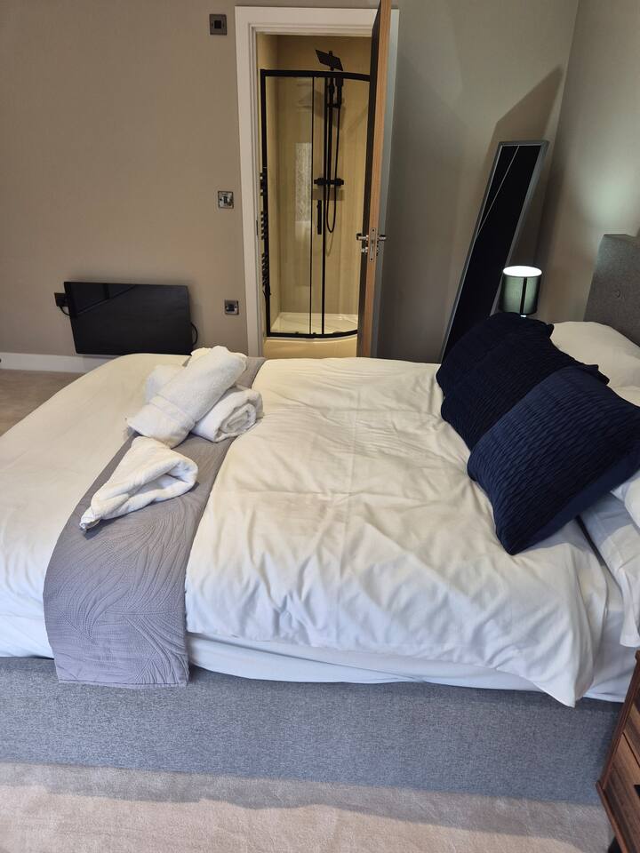 This spacious interior has been finished to a high standard and features comfortable furnishings, modern fixtures and fittings and plenty of room for up to 4 guests to enjoy a comfortable stay. There are 2 generous double bedrooms, both with comfortable beds made up with crisp hotel linen as well as plenty of storage space for clothes. The large open plan living area comprises a modern fully equipped kitchen with everything you need to cook your own meals at home, a sofa, armchair and smart TV. There is high speed broadband throughout the property. The 2 modern bathrooms both feature powerful showers (1 also with a bath), as well as complimentary toiletries and fluffy towels for your use.