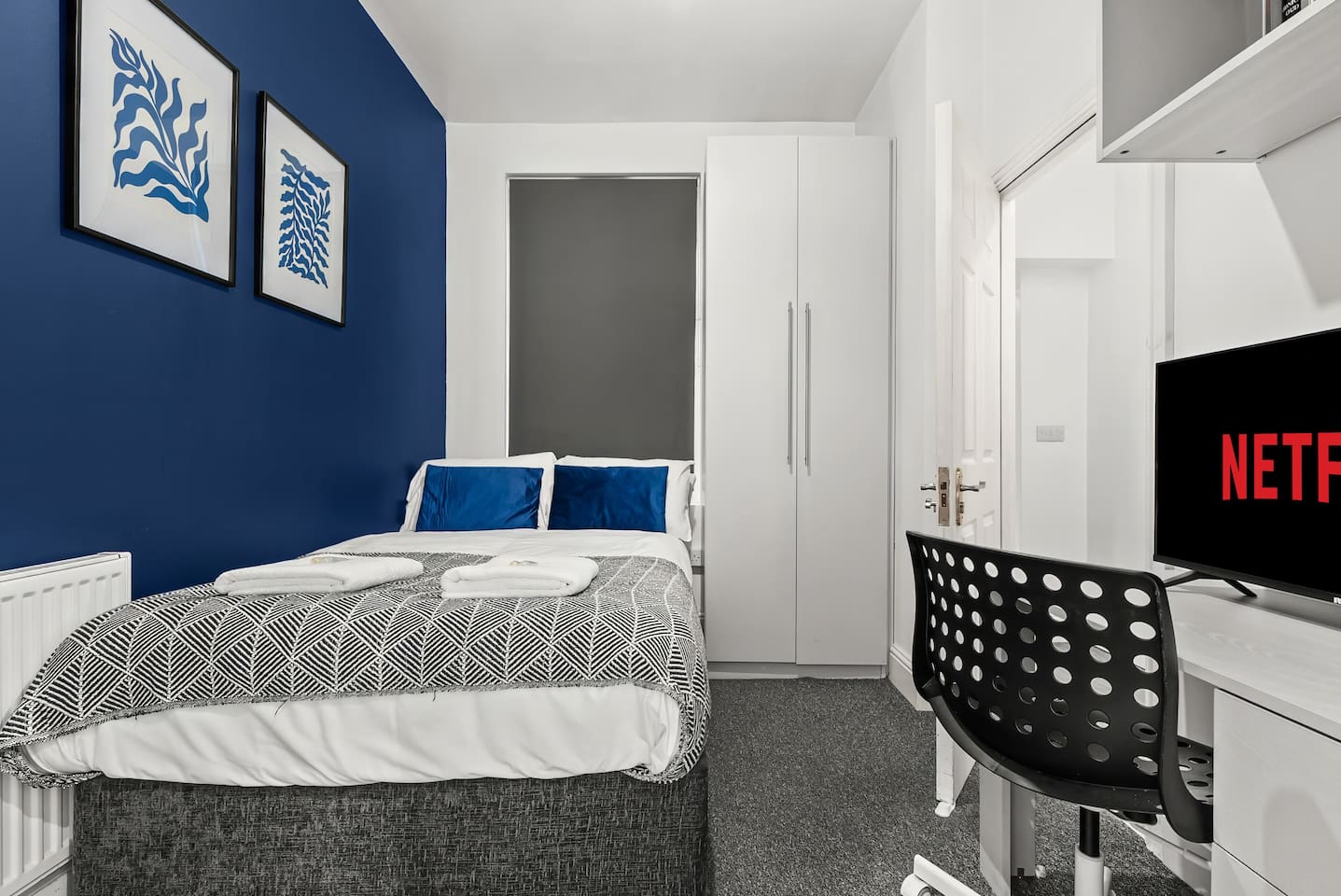 Modern 4 bedroom, 4-bathroom home in the heart of Coventry with Free Wi-Fi and 5 Smart TV’s. Perfect for families, business travellers, contractors & groups. Free Parking is available nearby on street for several vehicles. Sleeps 8 guests with free Wi-Fi, 5 Smart TV’s + Netflix, fully equipped kitchen & free parking. Central location close to the train station, university, shops & restaurants. Long-stay discounts & regular cleans available