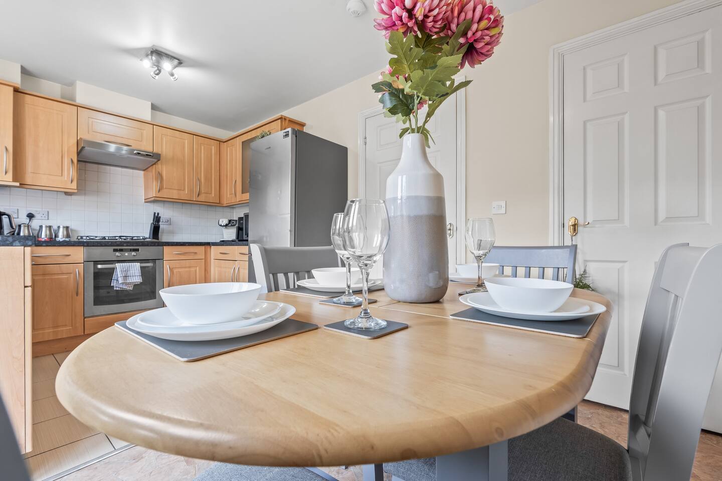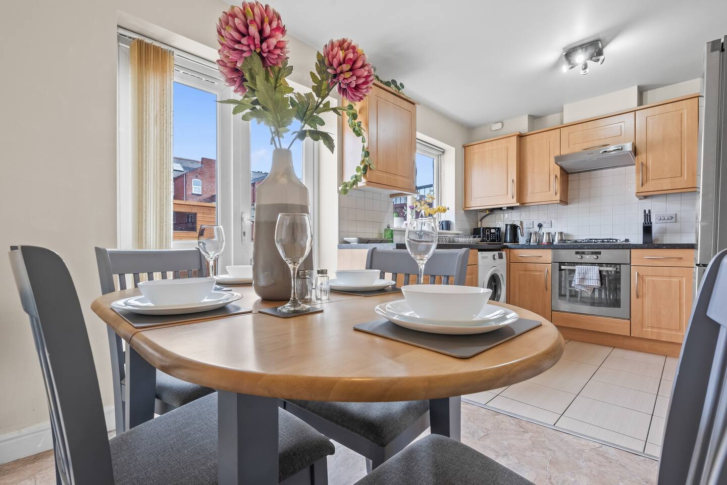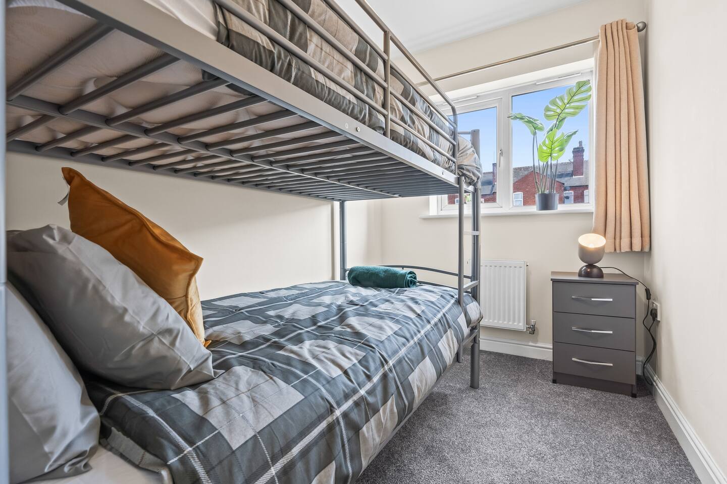 Welcome to our beautiful city house in Sandwell. A stylish home; comfortable and practical with amenities a short walk away. Relax in the large living room watching TV or enjoying dinner together on the dining table, after cooking in the fully equipped kitchen. The bedrooms offer a luxurious feel; a double sized-bed in the master suite, an En-suite bathroom, and two singles in bedroom 2, while bedroom three has a generous bunkbed. Coffee in the garden is a must in the morning!