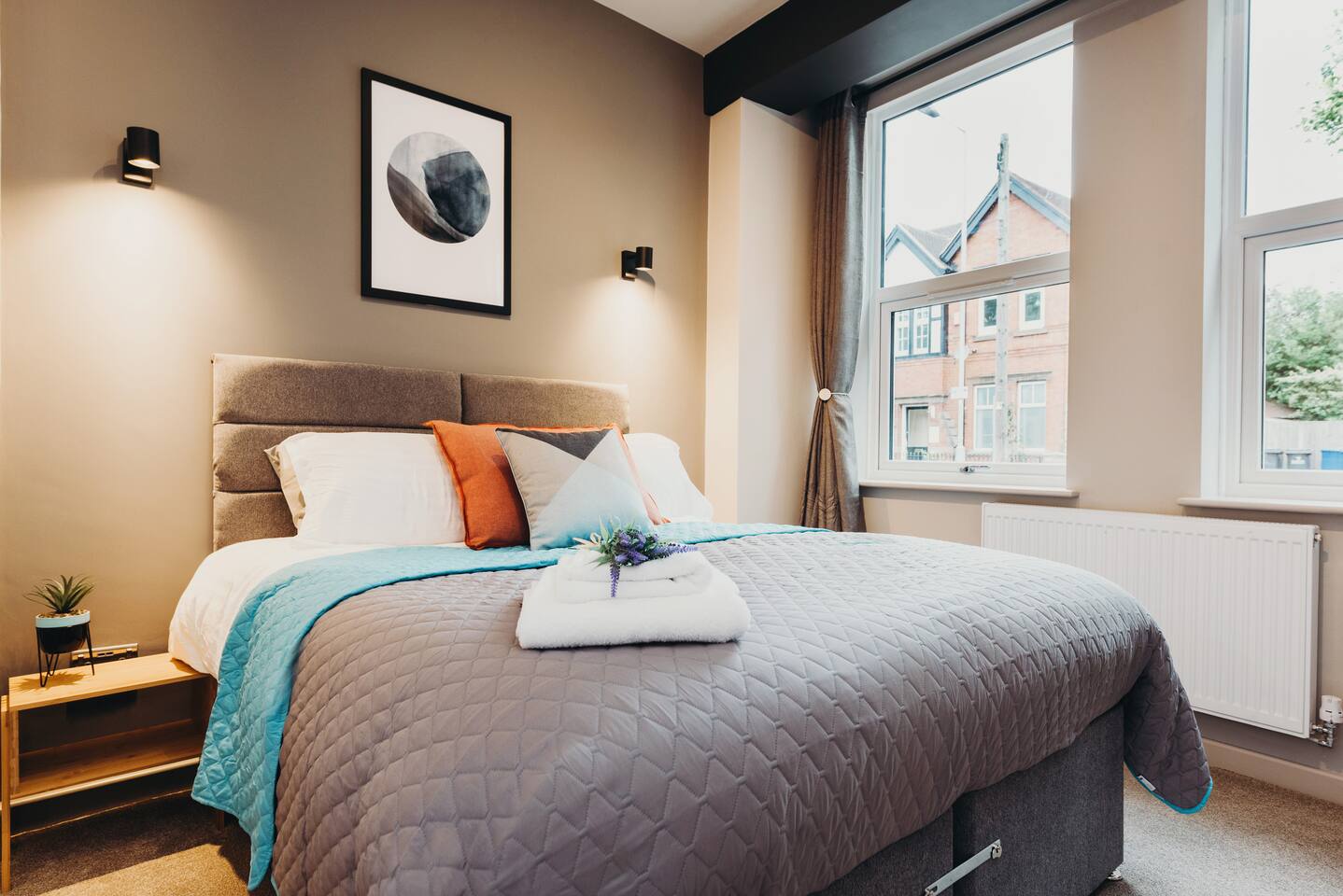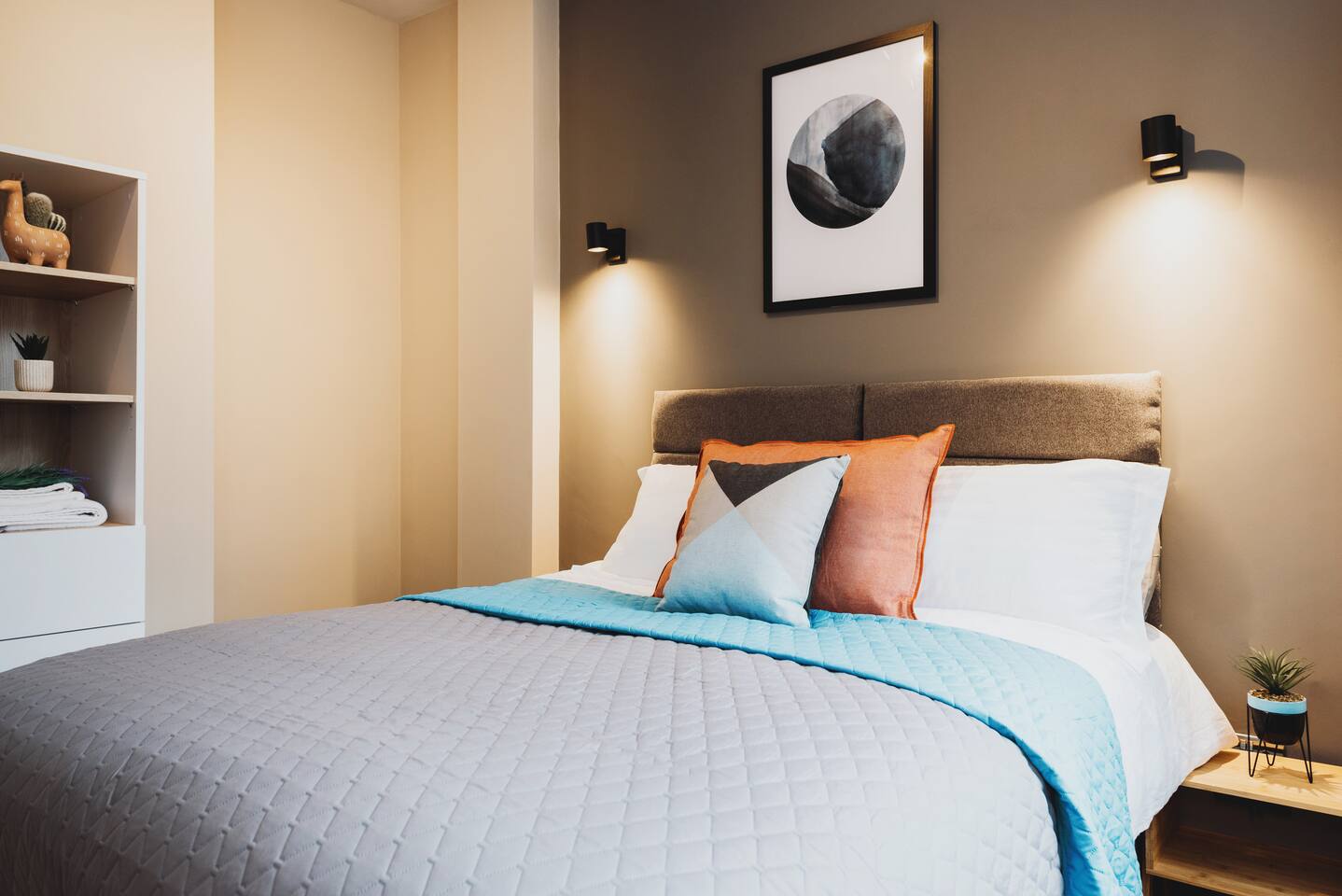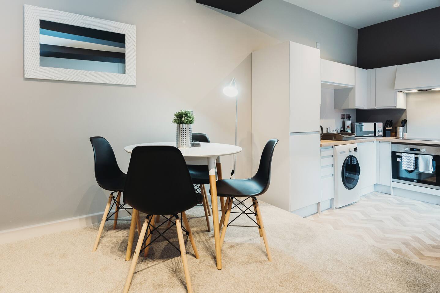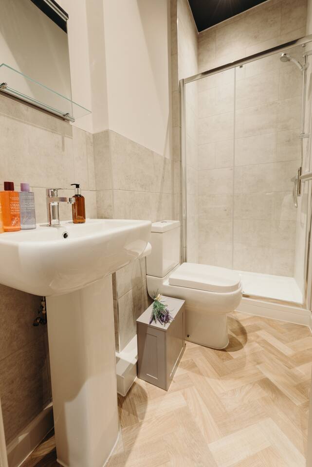 More apartments available in the same building, message us for discounts by following the instructions on the green picture. You’ll be able to relax in the newly refurbished large open plan living room, using the Super-fast Wi-Fi or enjoying watching the wall-mounted Netflix ready flat screen TV. The apartment is equipped with numerous smart home features designed to make your stay even more enjoyable and also comes with off road parking. Walking into the hallway, to your right is the spacious master bedroom. Complete with large comfortable king-size bed which can be split into two singles if desired, the room also has a large wardrobe and built-in desk area. The second bedroom also has a large comfortable king-size bed which can be split into two singles and a large wardrobe with plenty of storage space. At the end of the hallway is the impressive open plan living area with an oversized chaise sofa, the room opens up to the kitchen and dining areas. The kitchen is fully equipped with a range of cookware, so you can warm up a quick meal in the microwave or cook a full roast dinner. The beautiful power- shower will ensure you are relaxed and ready for the day ahead! The apartment can sleep up to 6 people, with use of the large sofa bed. • Working from "HOME" • Leisure guests visiting the Snow Dome, Drayton Manor or historic Tamworth Castle will love this place! • Contractors & HS2 workers • Staying away while you work • Self-check in, with assistance at the end of the phone. • Immaculately clean and always disinfected • 2-minute walk to Tamworth train station & Tamworth high st • Birmingham Airport & NEC 20 minutes by car