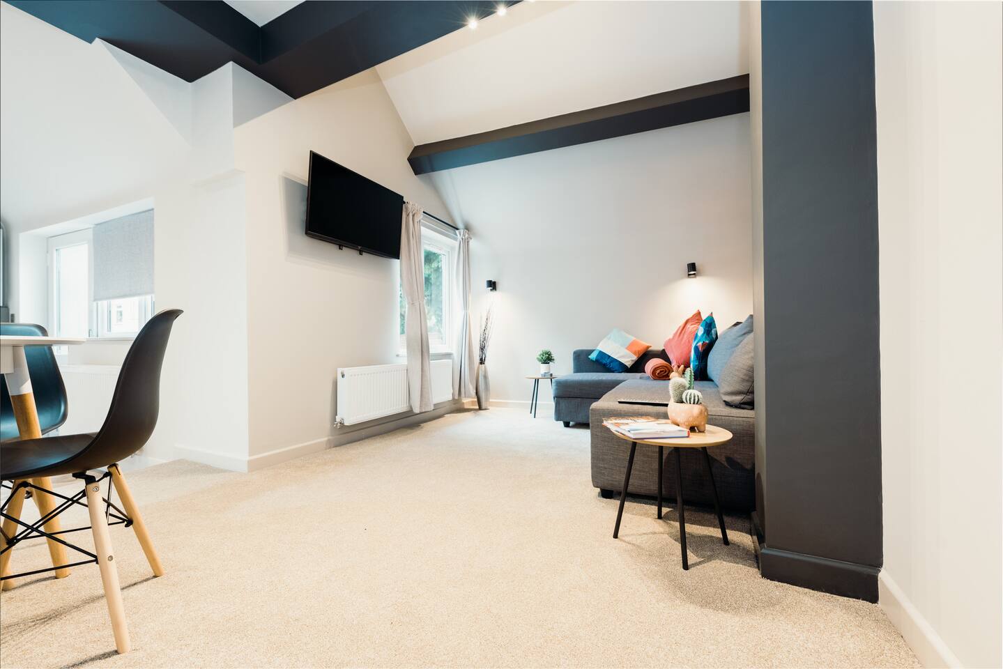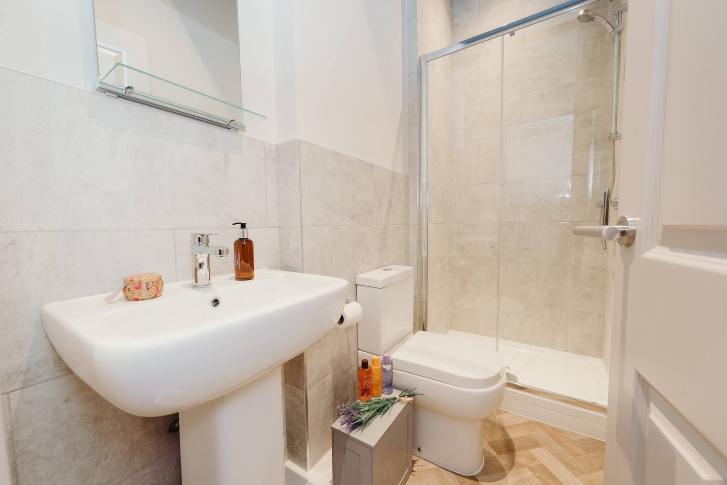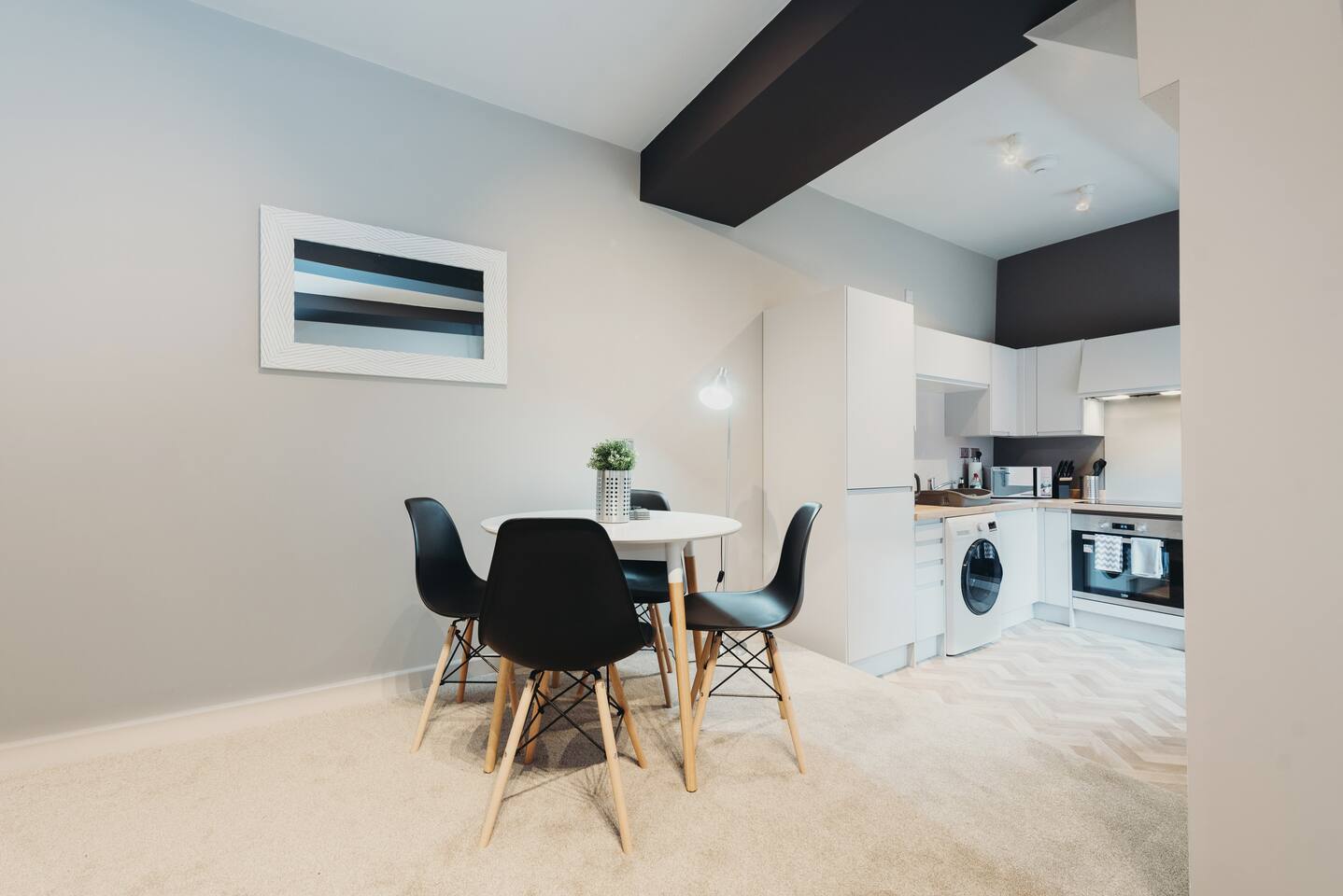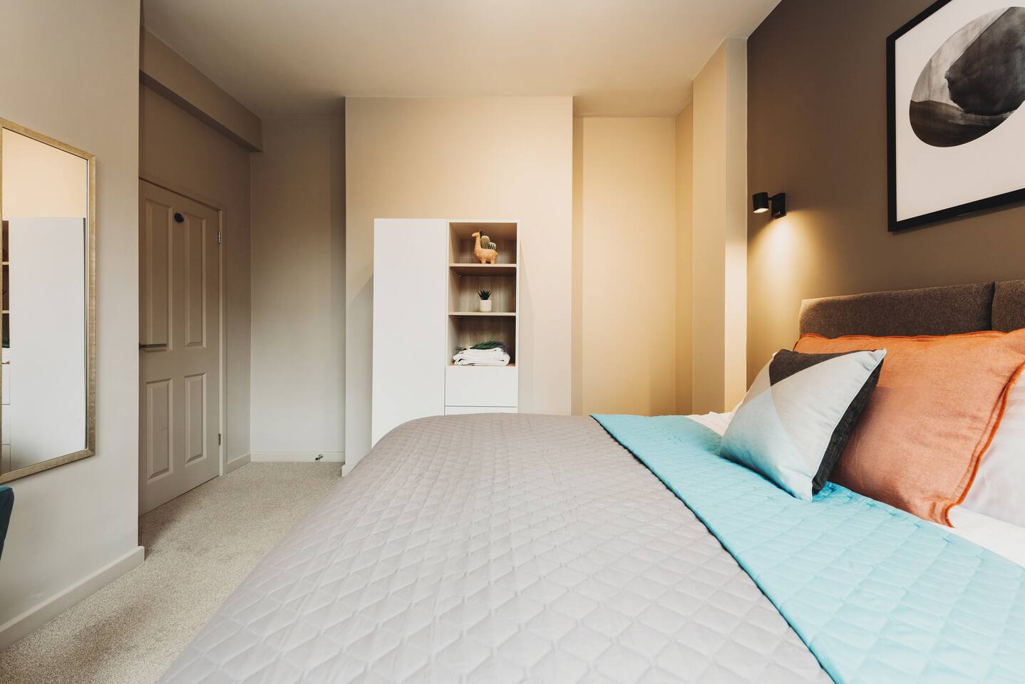 More apartments available in the same building, message us for discounts by following the instructions on the green picture. You’ll be able to relax in the newly refurbished large open plan living room, using the Super-fast Wi-Fi or enjoying watching the wall-mounted Netflix ready flat screen TV. The apartment is equipped with numerous smart home features designed to make your stay even more enjoyable and also comes with off road parking. Walking into the hallway, to your right is the spacious master bedroom. Complete with large comfortable king-size bed which can be split into two singles if desired, the room also has a large wardrobe and built-in desk area. The second bedroom also has a large comfortable king-size bed which can be split into two singles and a large wardrobe with plenty of storage space. At the end of the hallway is the impressive open plan living area with an oversized chaise sofa, the room opens up to the kitchen and dining areas. The kitchen is fully equipped with a range of cookware, so you can warm up a quick meal in the microwave or cook a full roast dinner. The beautiful power- shower will ensure you are relaxed and ready for the day ahead! The apartment can sleep up to 6 people, with use of the large sofa bed. • Working from "HOME" • Leisure guests visiting the Snow Dome, Drayton Manor or historic Tamworth Castle will love this place! • Contractors & HS2 workers • Staying away while you work • Self-check in, with assistance at the end of the phone. • Immaculately clean and always disinfected • 2-minute walk to Tamworth train station & Tamworth high st • Birmingham Airport & NEC 20 minutes by car