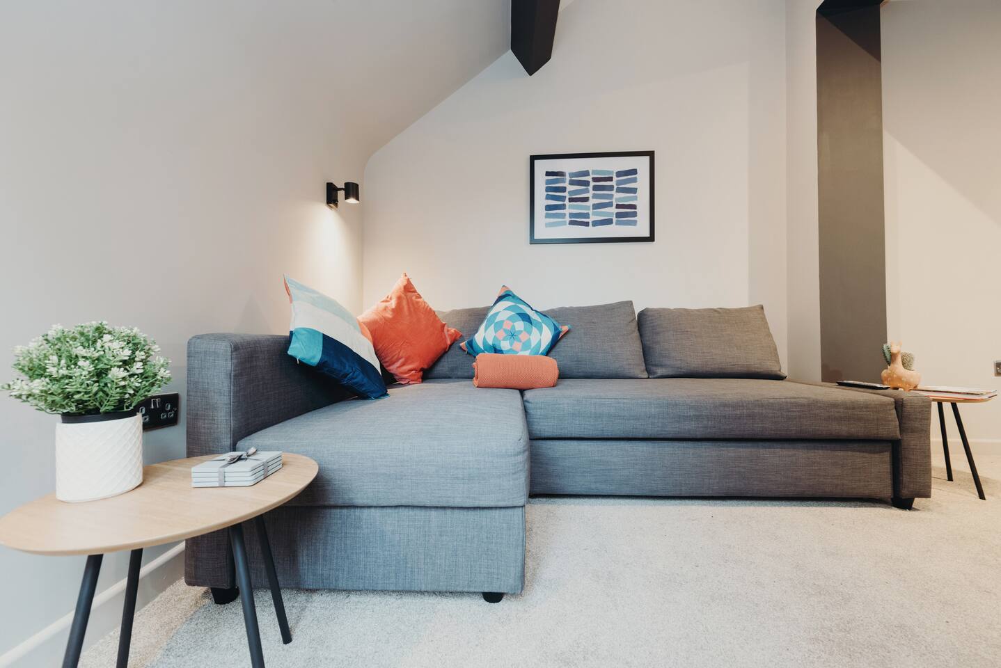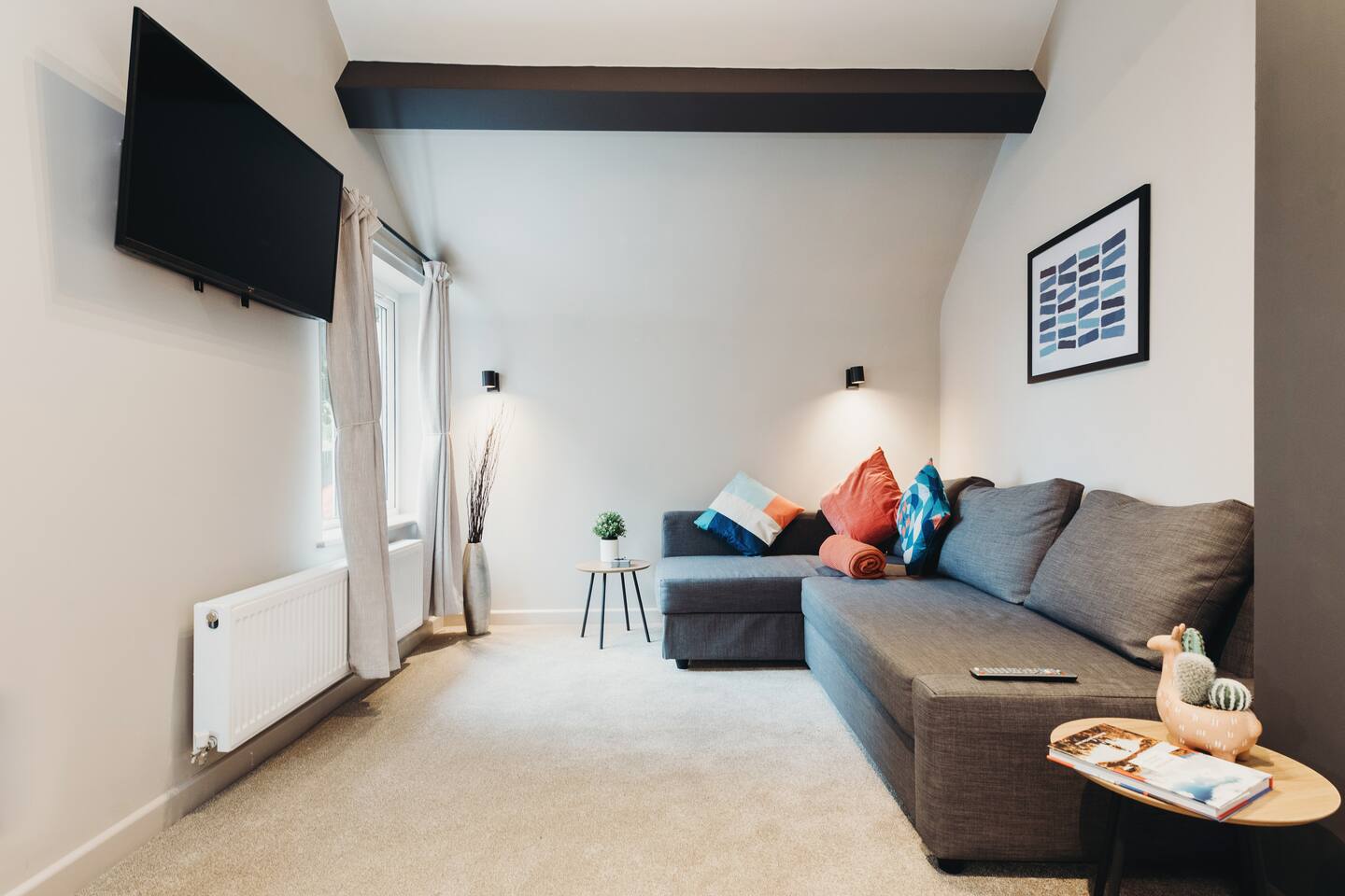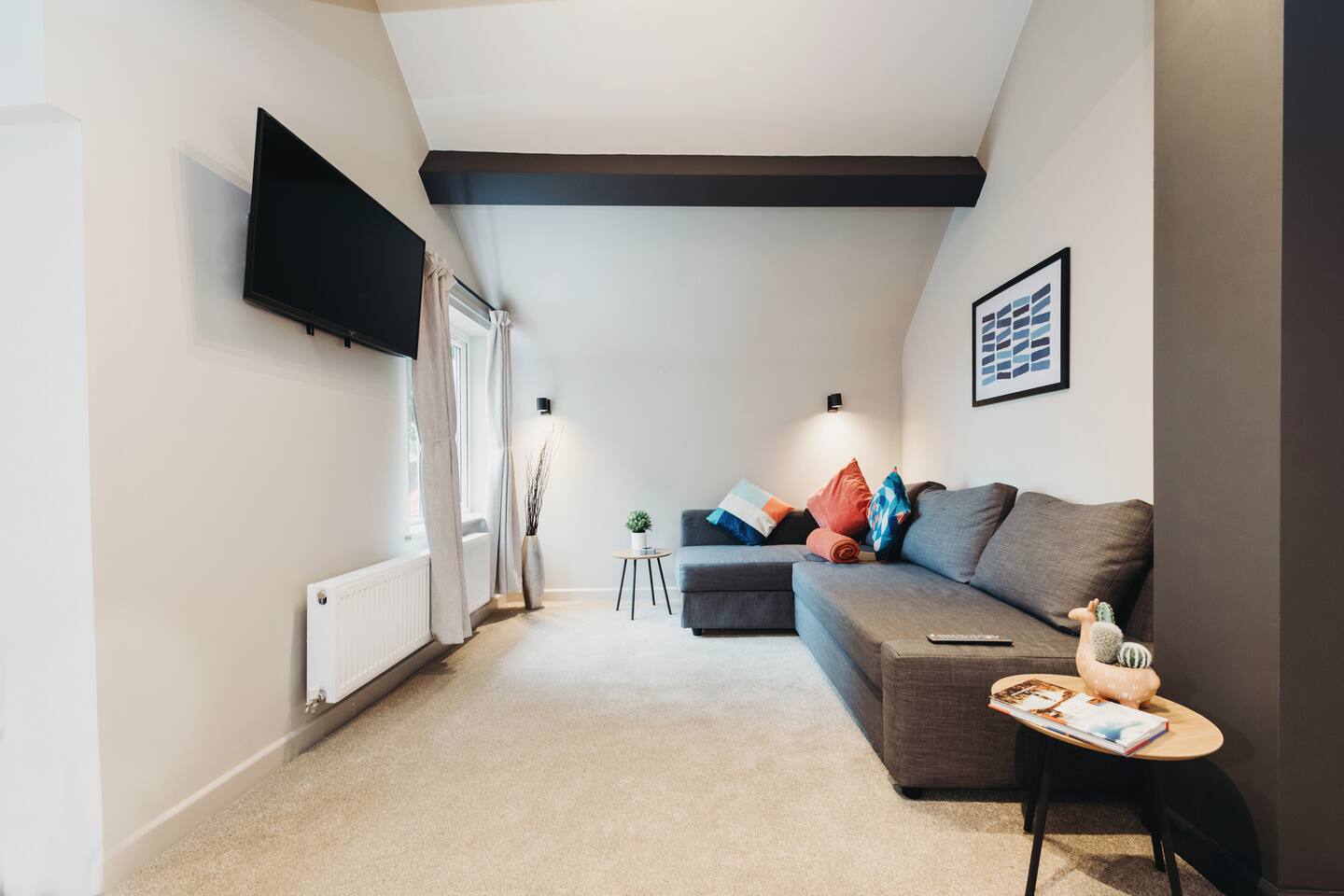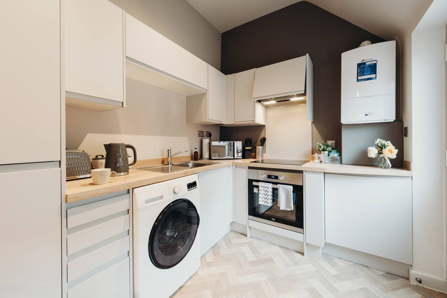 More apartments available in the same building, message us for discounts by following the instructions on the green picture. You’ll be able to relax in the newly refurbished large open plan living room, using the Super-fast Wi-Fi or enjoying watching the wall-mounted Netflix ready flat screen TV. The apartment is equipped with numerous smart home features designed to make your stay even more enjoyable and also comes with off road parking. Walking into the hallway, to your right is the spacious master bedroom. Complete with large comfortable king-size bed which can be split into two singles if desired, the room also has a large wardrobe and built-in desk area. The second bedroom also has a large comfortable king-size bed which can be split into two singles and a large wardrobe with plenty of storage space. At the end of the hallway is the impressive open plan living area with an oversized chaise sofa, the room opens up to the kitchen and dining areas. The kitchen is fully equipped with a range of cookware, so you can warm up a quick meal in the microwave or cook a full roast dinner. The beautiful power- shower will ensure you are relaxed and ready for the day ahead! The apartment can sleep up to 6 people, with use of the large sofa bed. • Working from "HOME" • Leisure guests visiting the Snow Dome, Drayton Manor or historic Tamworth Castle will love this place! • Contractors & HS2 workers • Staying away while you work • Self-check in, with assistance at the end of the phone. • Immaculately clean and always disinfected • 2-minute walk to Tamworth train station & Tamworth high st • Birmingham Airport & NEC 20 minutes by car
